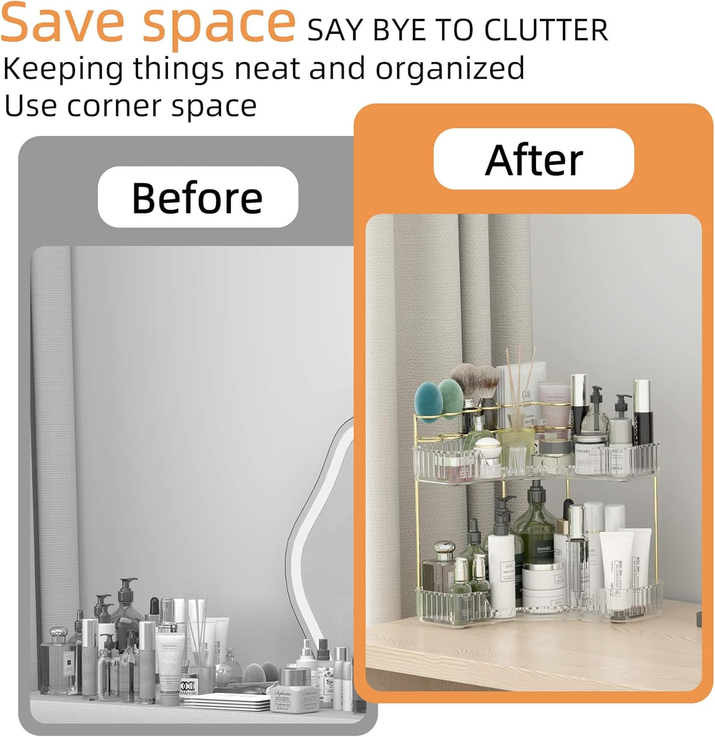 - 【Ideal Gift & Customer Service】Our makeup countertop organizer is ideal gift for many holidays: Christmas, New Year, Valentine's Day, Mother's Day, bridal showers, birthdays, etc. If you have any questions after receiving this item, please contact us.