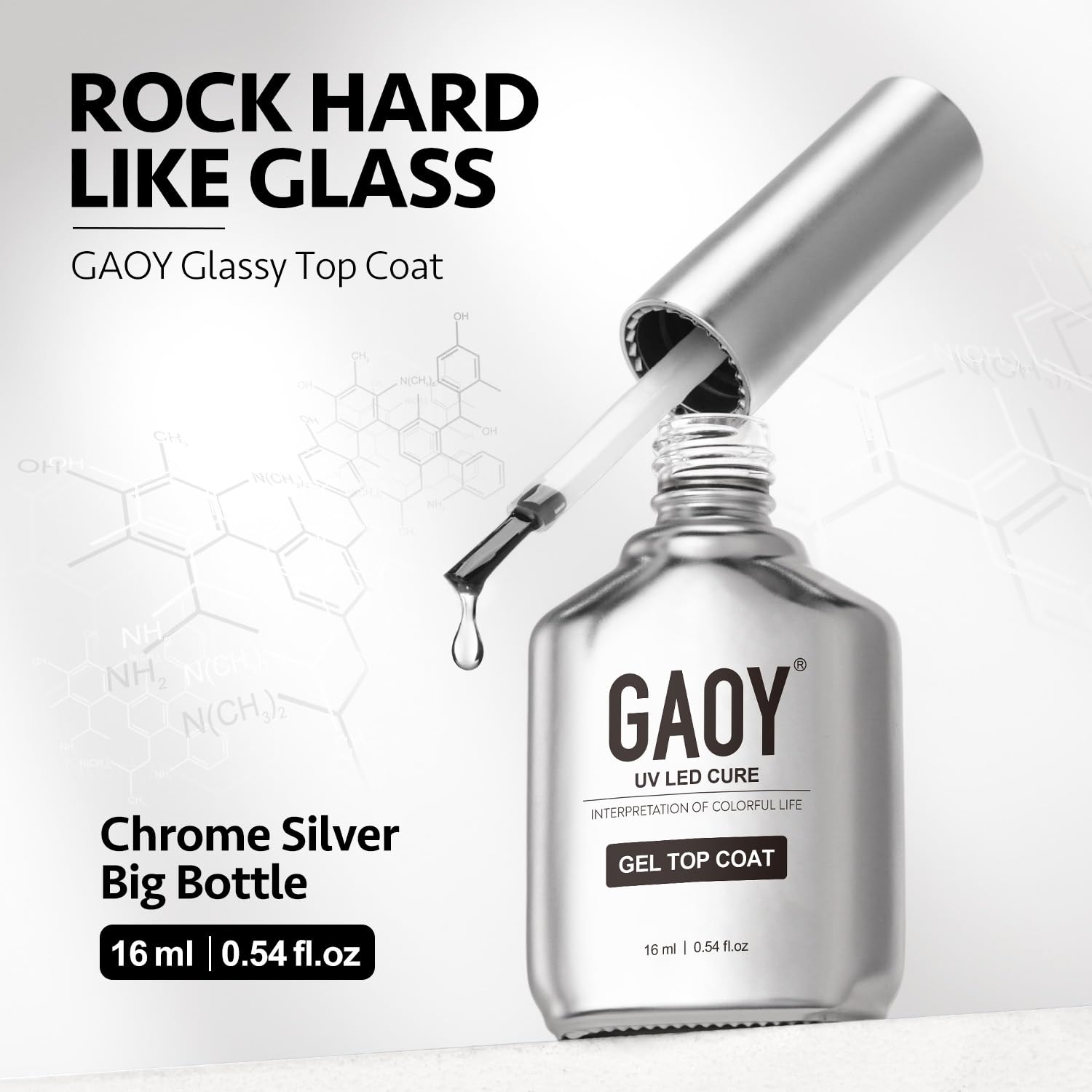 GAOY 16ml 4 Pcs Glassy Gel Top Coat and Base Coat Set, No Wipe Foundation Combination for UV Light Cure Nail Polish