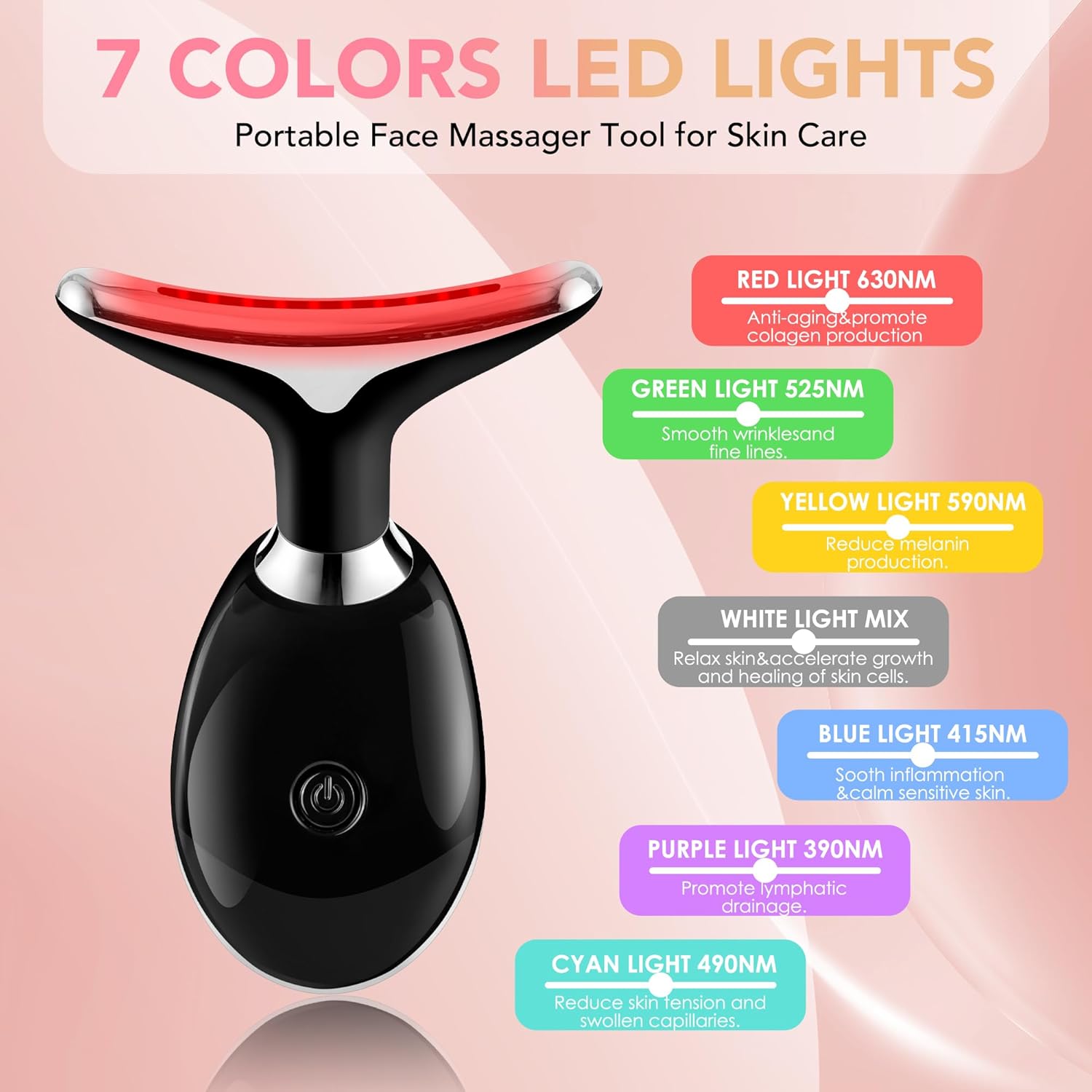 Red-Light-Therapy-for-Face, Facial Massager Wand with 7 Color - Birthday, Christmas, Mothers Day, Valentines Day, Self Care Gifts for Her Women Mom Best Friend Wife Teacher (Black)
