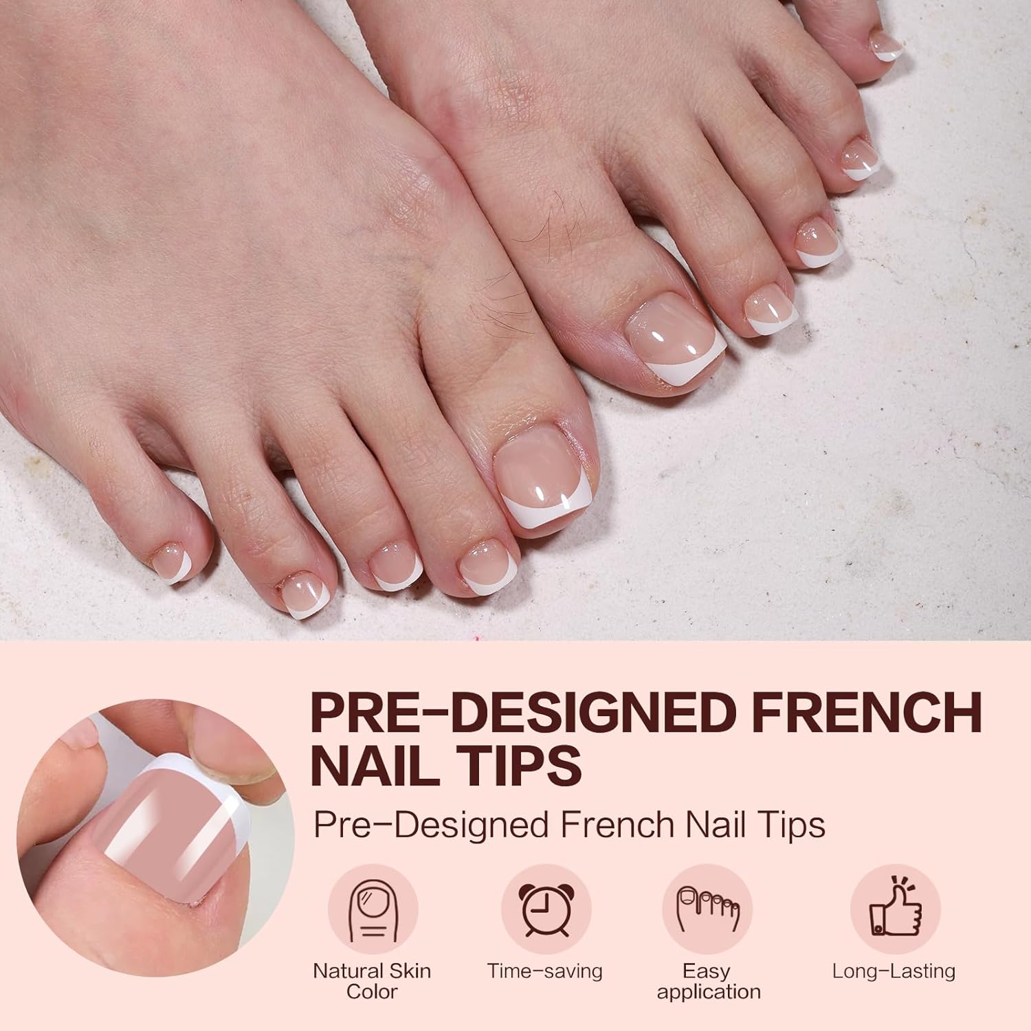 - 【Pre-Colored & Ready to Wear】GELLAKTIK’s french white press-on toe nails feature a natural base with a glossy finish, offering a polished and feminine look. No need for extra polish—just apply with gel glue, seal with a top coat, and enjoy flawless nails in minutes. Ideal for beginners and nail art enthusiasts alike!