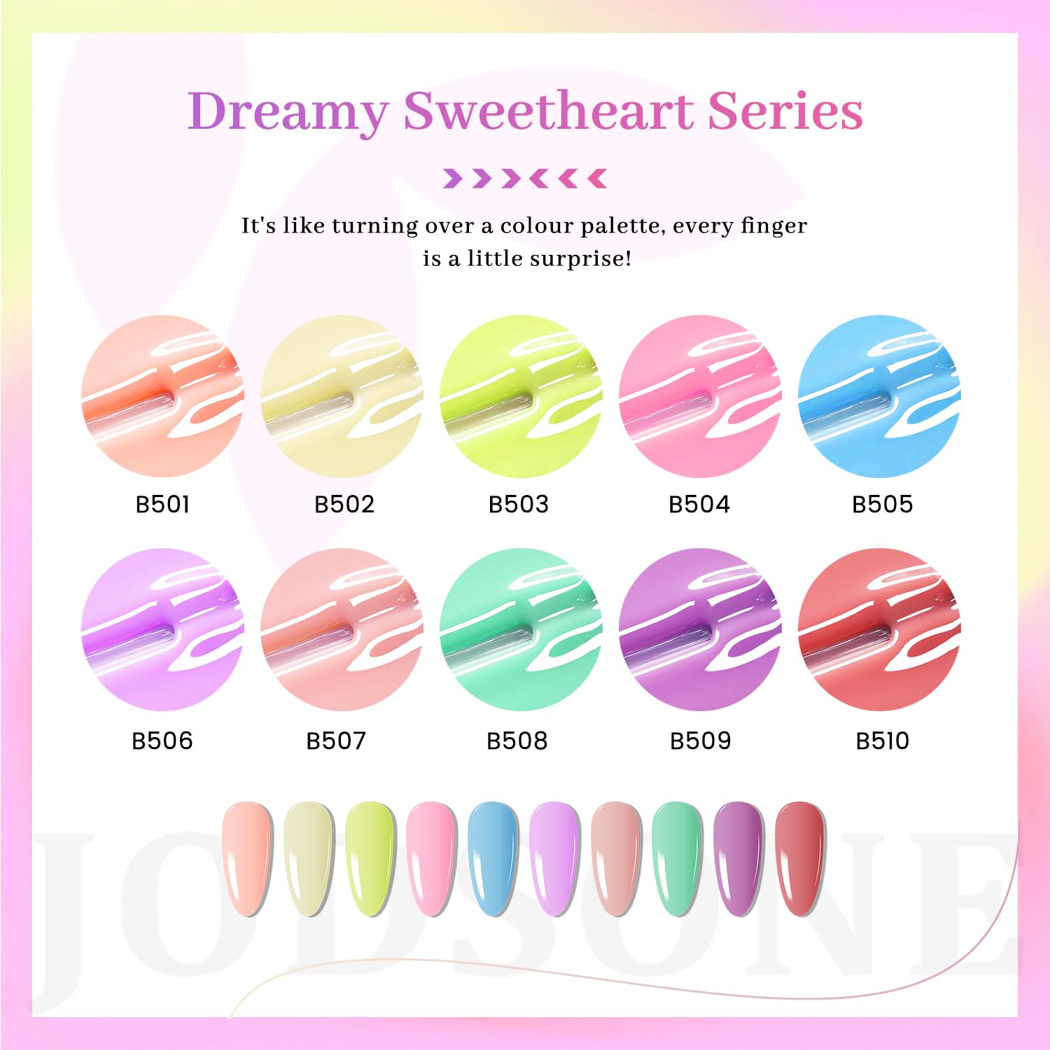 - Salon & Home Use: JODSONE Nail Polish completes a gorgeous manicure, perfect for professional salons and home use.