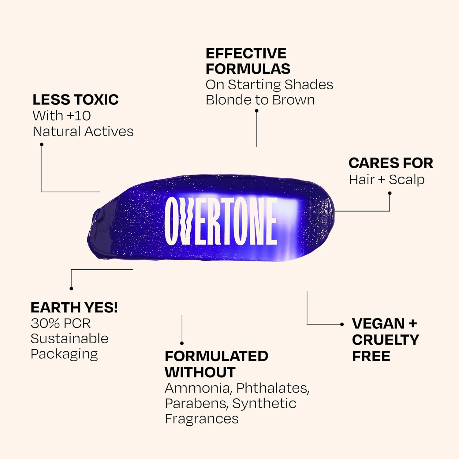 - OVERTONE- REDEFINING HAIRCARE: We believe in bold, vibrant self-expression & healthy, nourished hair. Our salon-quality, vegan, and cruelty-free products are designed for every hair type and color. Free from parabens, sulfates, and harsh chemicals.