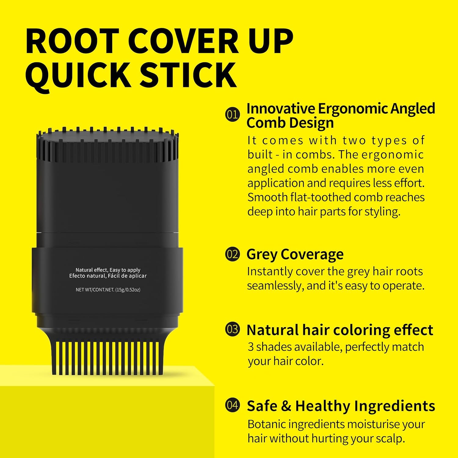 - 【Convenient Hair Dye and Comb 2-in-1 Design】Thanks to its innovative ergonomic oblique - tooth comb design, using this hair dye stick is a breeze. It comes with two types of combs. The ergonomic oblique - tooth comb distributes the product evenly with less effort, ensuring every gray hair is covered perfectly. The smooth flat - tooth comb can penetrate deep into the hair seams, allowing you to style your hair while covering gray roots, making the whole process efficient and enjoyable