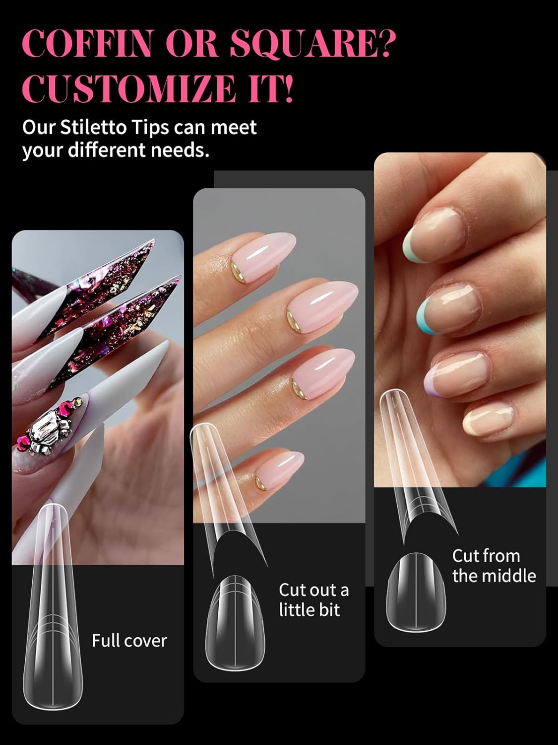 - 【Nail Form Mold with 15 Sizes】150pcs stiletto clear dual forms for poly nail gel offers 15 different nail sizes , and each size of long nail tips is separated by a small grid, a total of 15 grids, so they're easy and convenient to choose the suitable size to meet your nail's need.