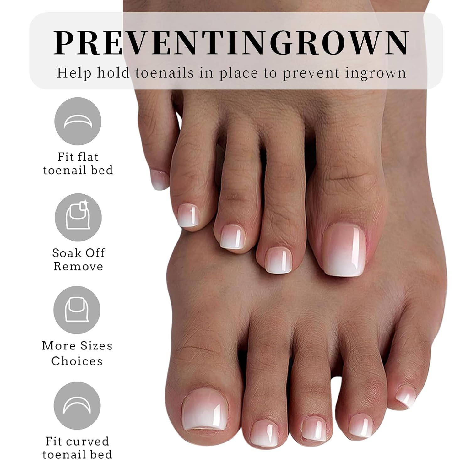 - 【High Quality Press On Nails】This White Tips fake nails for toe are made of high quality ABS material, makes them chip-free, non-toxic, bubble-free, and super durable; Seamless fit and natural look, just like grows on you. The press on nails are pre-numbered on the tips for easily find the suitable size