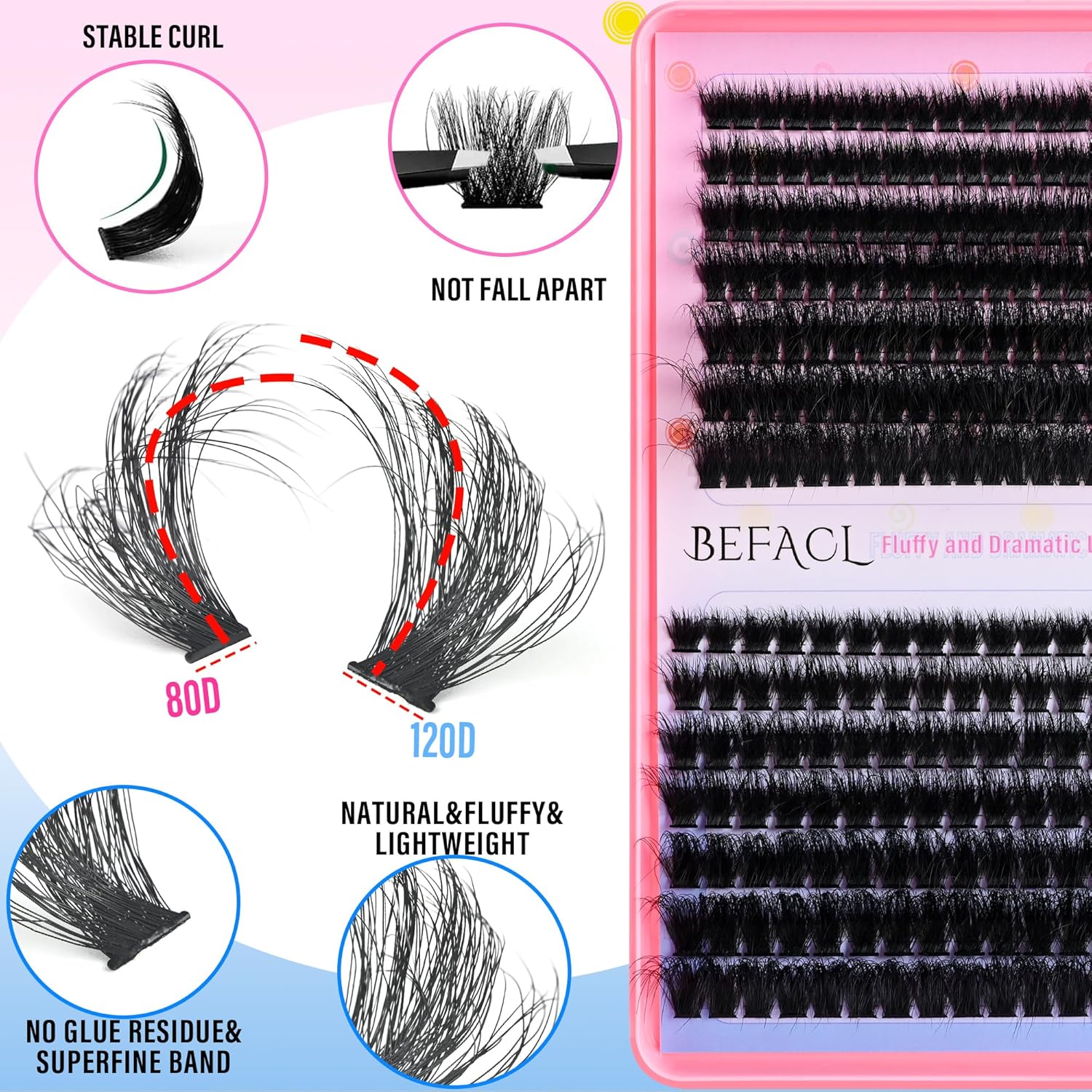 - Color : 80+120D Fluffy Lash Clusters(10-22MM)
