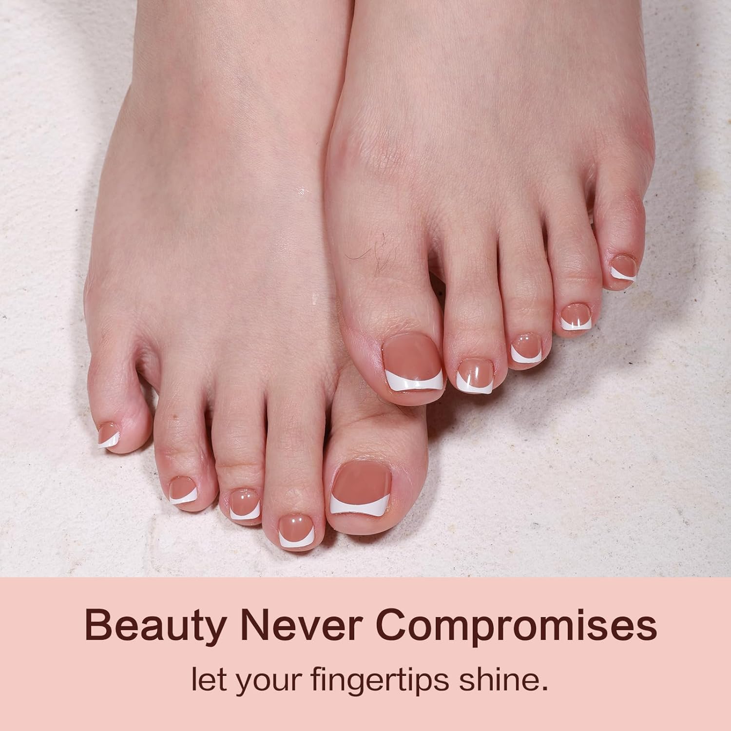 - 【Pre-Colored & Ready to Wear】GELLAKTIK’s french nude press-on toe nails feature a natural base with a glossy finish, offering a polished and feminine look. No need for extra polish—just apply with gel glue, seal with a top coat, and enjoy flawless nails in minutes. Ideal for beginners and nail art enthusiasts alike!