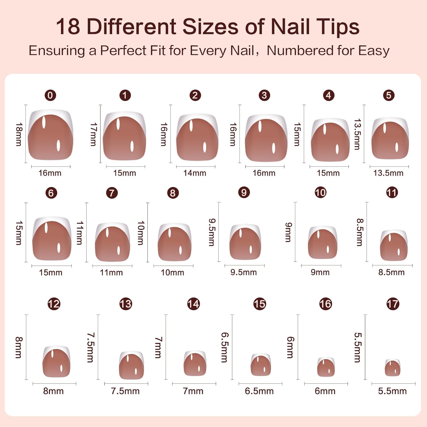 French Tip Press on Toenails 144PCS with 4 Strips, 18 Sizes Nude Fake Nails - No Need to File, Pre-applied Primer, Short Square Toe Nails Kit for Women Pedicure & Gift