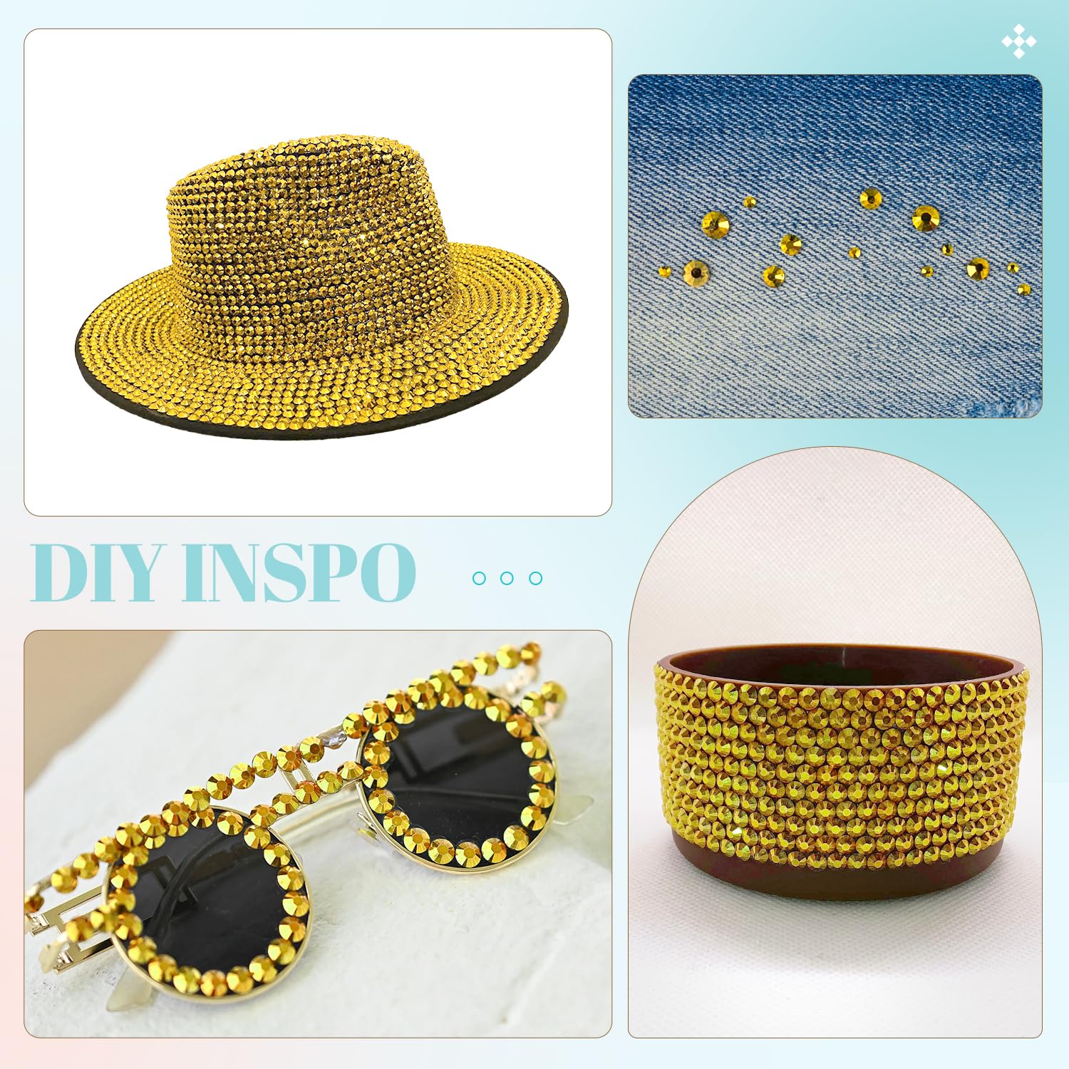 - WIDE APPLICATION -- These sparkling iridescent resin crystals are perfect for creating dazzling looks. Use them for bedazzling DIY crafts like shoes, tumblers, mugs, bottles, phone cases, popsockets, scrapbooks, photo frames, diamond paintings, greeting cards, bags, glasses, guitars, keychains, hats, masks, hair clips, bracelets, wristbands, clothing, wedding dresses, and more. Apply it to what you want to bling!