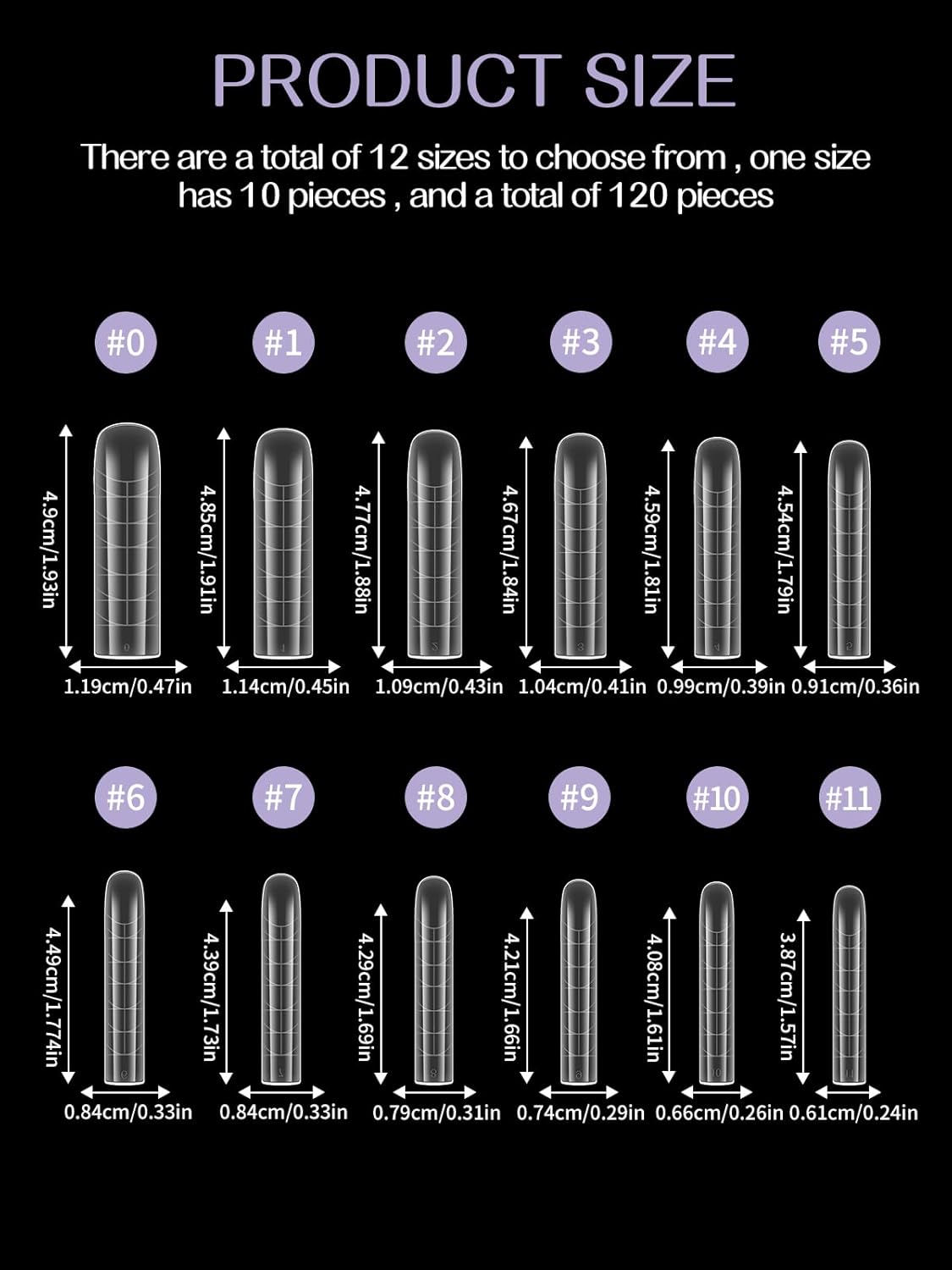 - 【12 Sizes of Nail Form Mold】120PCS coffin clear dual forms for poly nail gel offers 12 different nail sizes , and each size of long nail tips is separated by a small grid, a total of 12 grids, so they're easy and convenient to choose the suitable size to meet your nail's need.