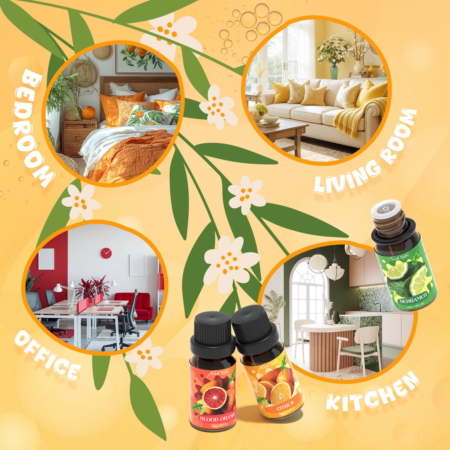 - Mood-Boosting Energy: Each citrus essential oil in our collection is carefully chosen for its mood-enhancing properties. Whether you're diffusing Lemon to inspire focus or Bergamot to ease tension, these zesty oils bring an energizing, sunlit atmosphere to your home or workspace.