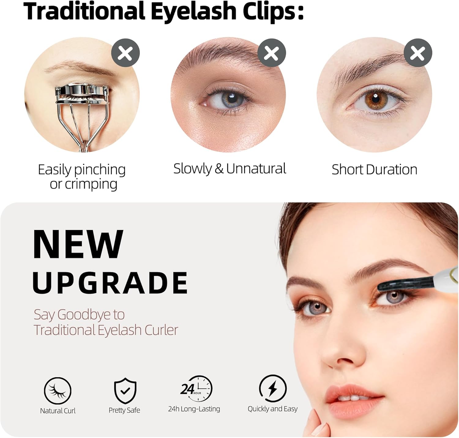 - 【Natural-looking & 24H Long-lasting】With EYECURL S600 heated eyelash curlers can easily create a natural-looking, long-lasting curl eyelash in seconds, really save your time, bring you brilliant beauty eyelashes.Softly lifts and curls lashes smoothly from base to tip, no pinching or crimping associated with traditional eyelash curlers. And you can get a beautiful natural curling eye lashes.