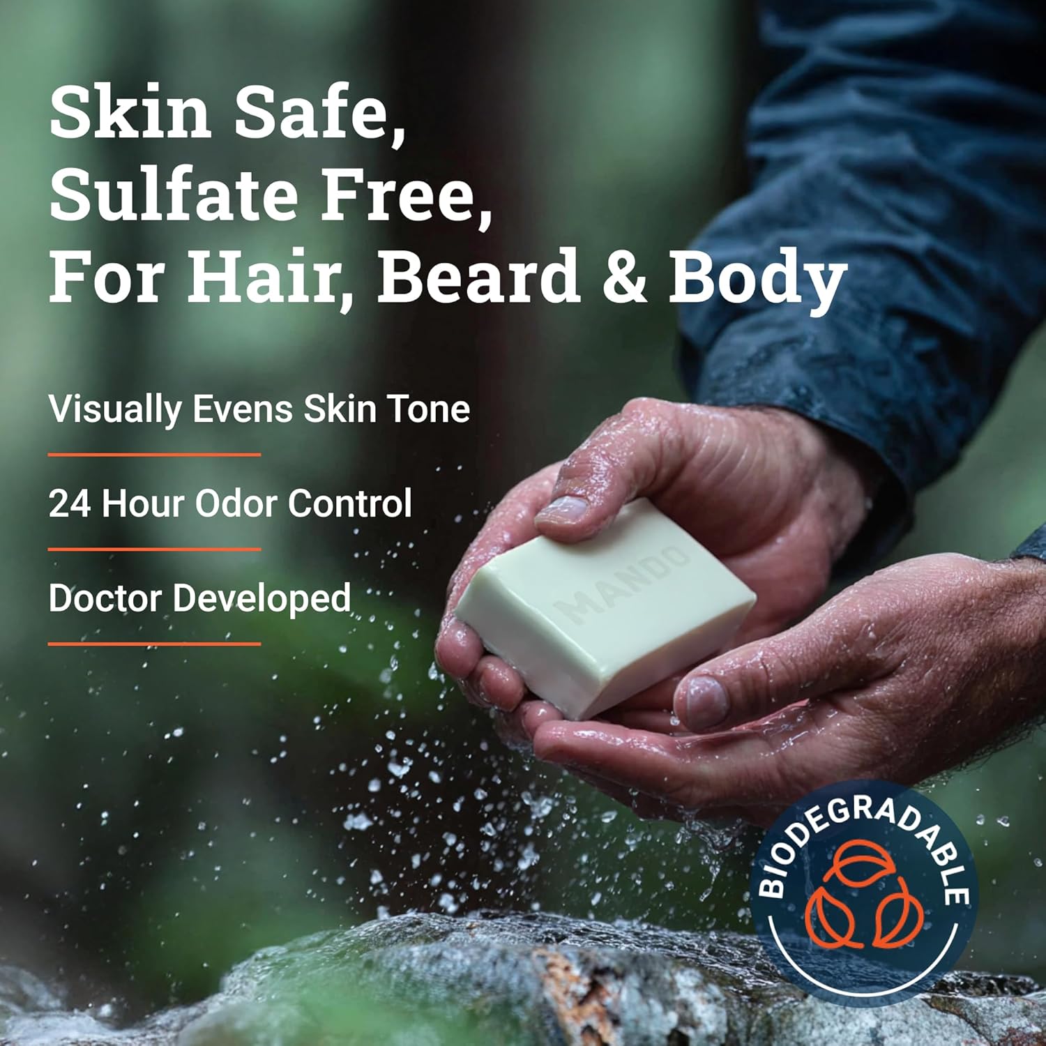 Mando Shampoo Bar - All in One Natural Shampoo Bar for Men - Cleanses and Moisturizes Hair, Beard and Body - Paraben & Sulfate Free - Biodegradable Formula - 5 Ounce - Pro Sport