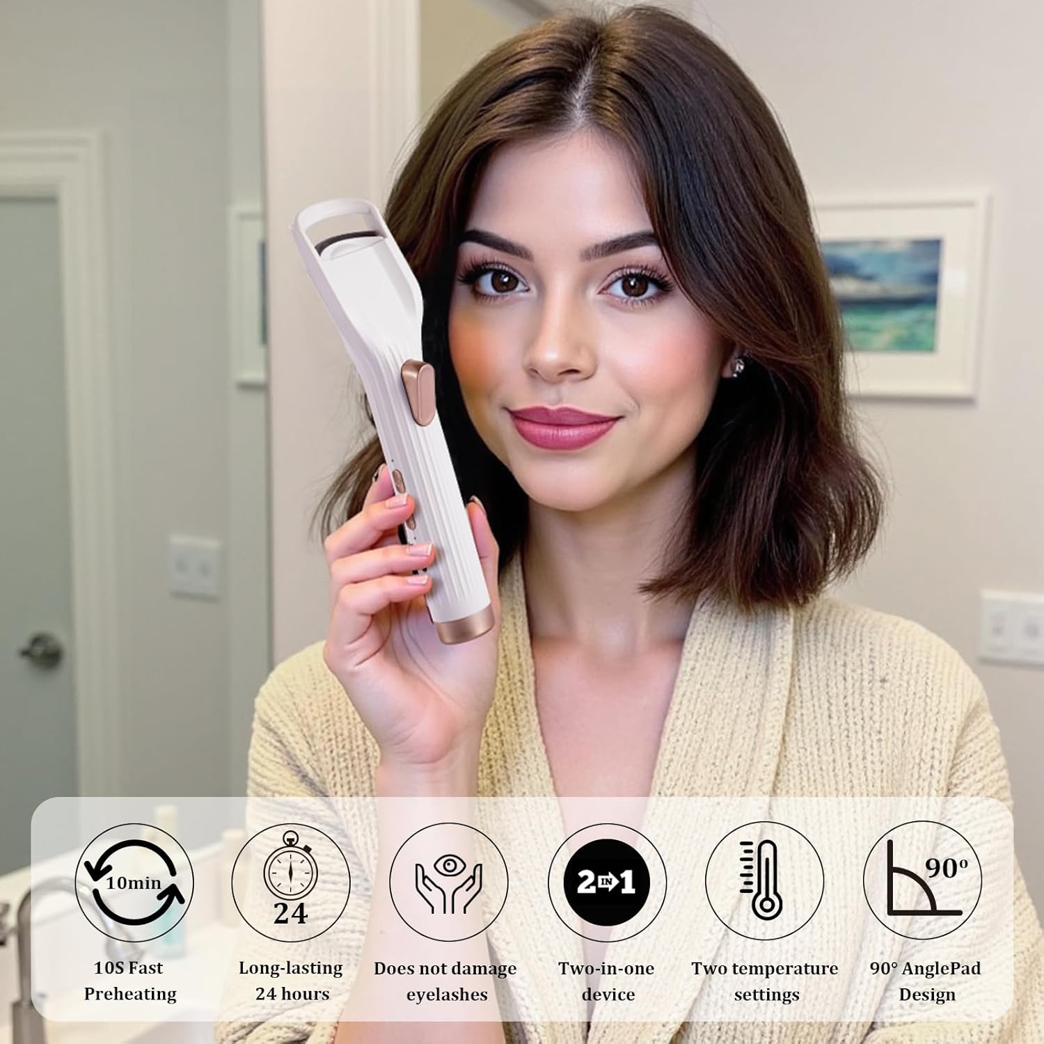 - Innovative 2-In-1 Design: This electric eyelash curler and blowing fan is designed to create the perfect eyelash look while providing a comfortable and cool experience. Say goodbye to traditional eyelash curlers and get beautifully curled lashes in just a few seconds