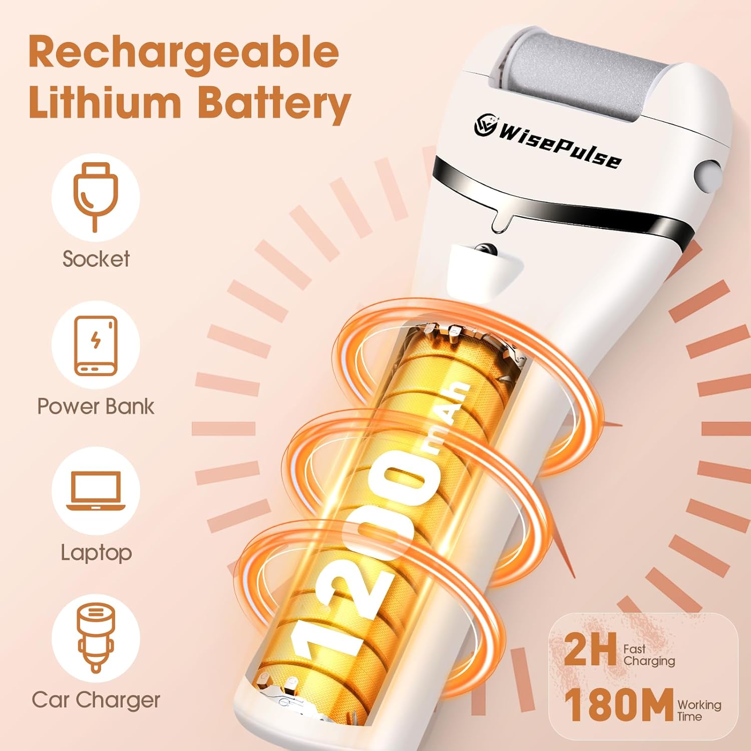 - Fast Charging & Long Lasting: Our electric feet callus remover is powered by a high-capacity 1200mAh lithium battery, delivering up to 180 minutes of usage after a 2.5-hour charge. It offers plug-and-play operation via the included Type-C cable and features an LED display for real-time power level and charging status monitoring. CE/FCC listed ensuring a long service life.