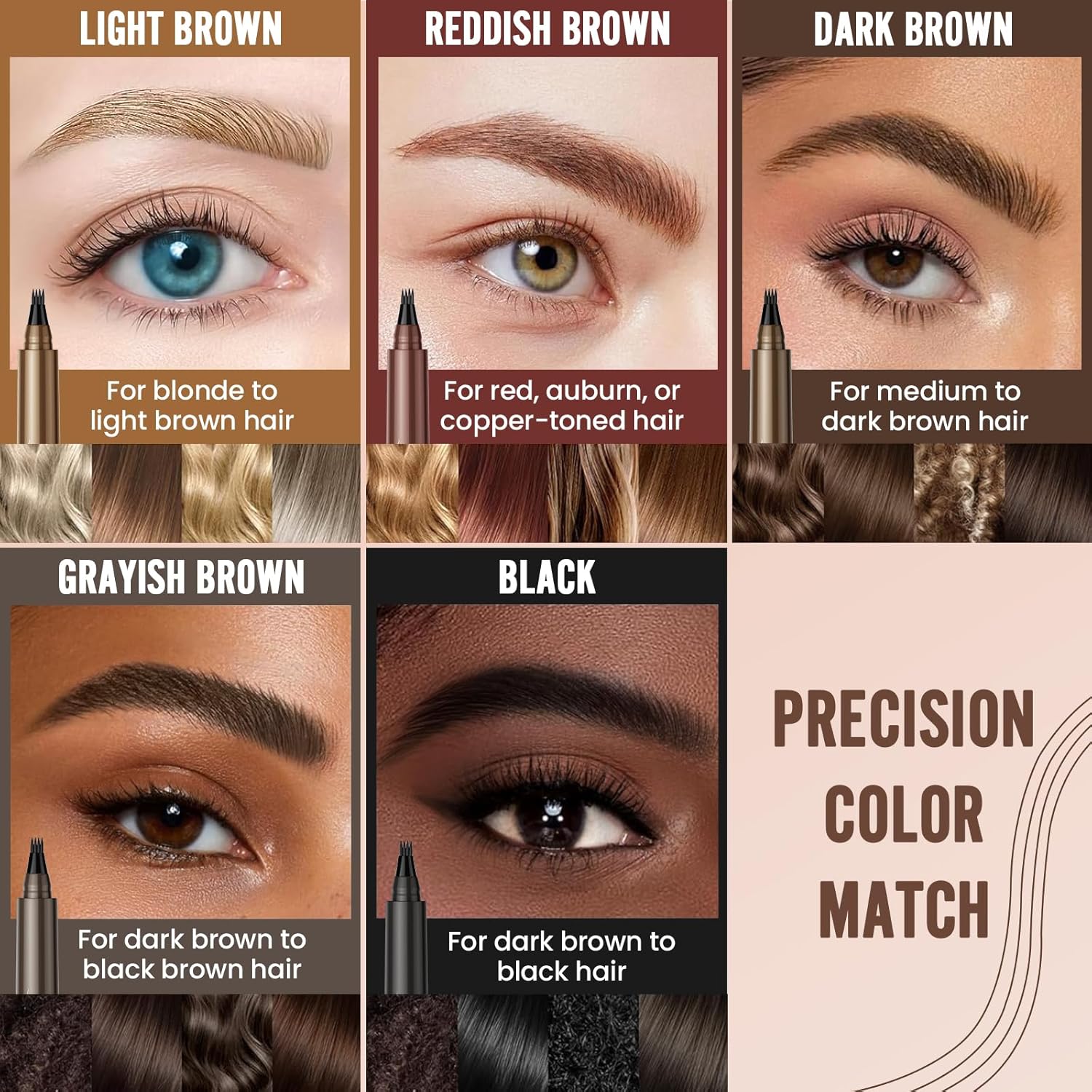 - 【Expertly Curated Shades】Discover your perfect match in our versatile shades (including Light Brown, Dark Brown, Black, Reddish Brown, and Grayish Brown). Each stroke delivers buildable, true-to-tone pigment for effortless self-expression - whether you crave natural definition or bold statement brows that enhance your unique beauty.