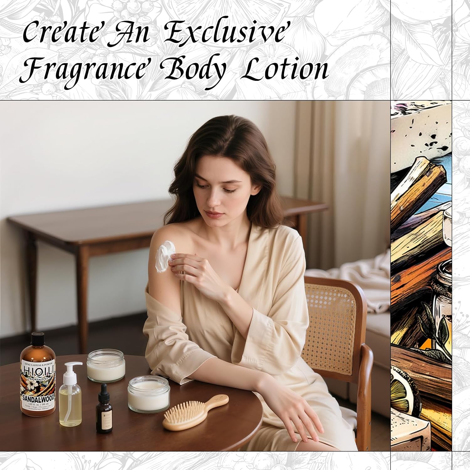 HIQILI Sandalwood Fragrance Oil for Home Diffuser, Luxury Hotel Scent, Perfect for DIY Candle & Soap Making, Add to Body Lotion - 5.07 Fl Oz