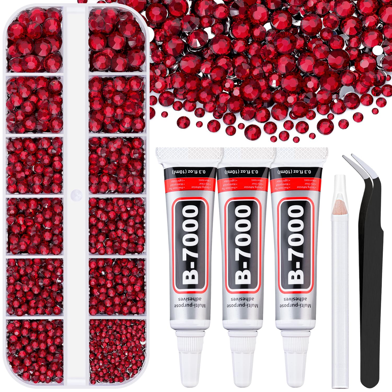 6000Pcs Resin Rhinestones for Bedazzling with 3Pcs B7000 Jewelry Glue, 1 Box Dark Red Flatback Rhinestones for Crafting Crafts DIY, Crystals Gems for Clothing Shoes Tumblers Nail Art Makeup