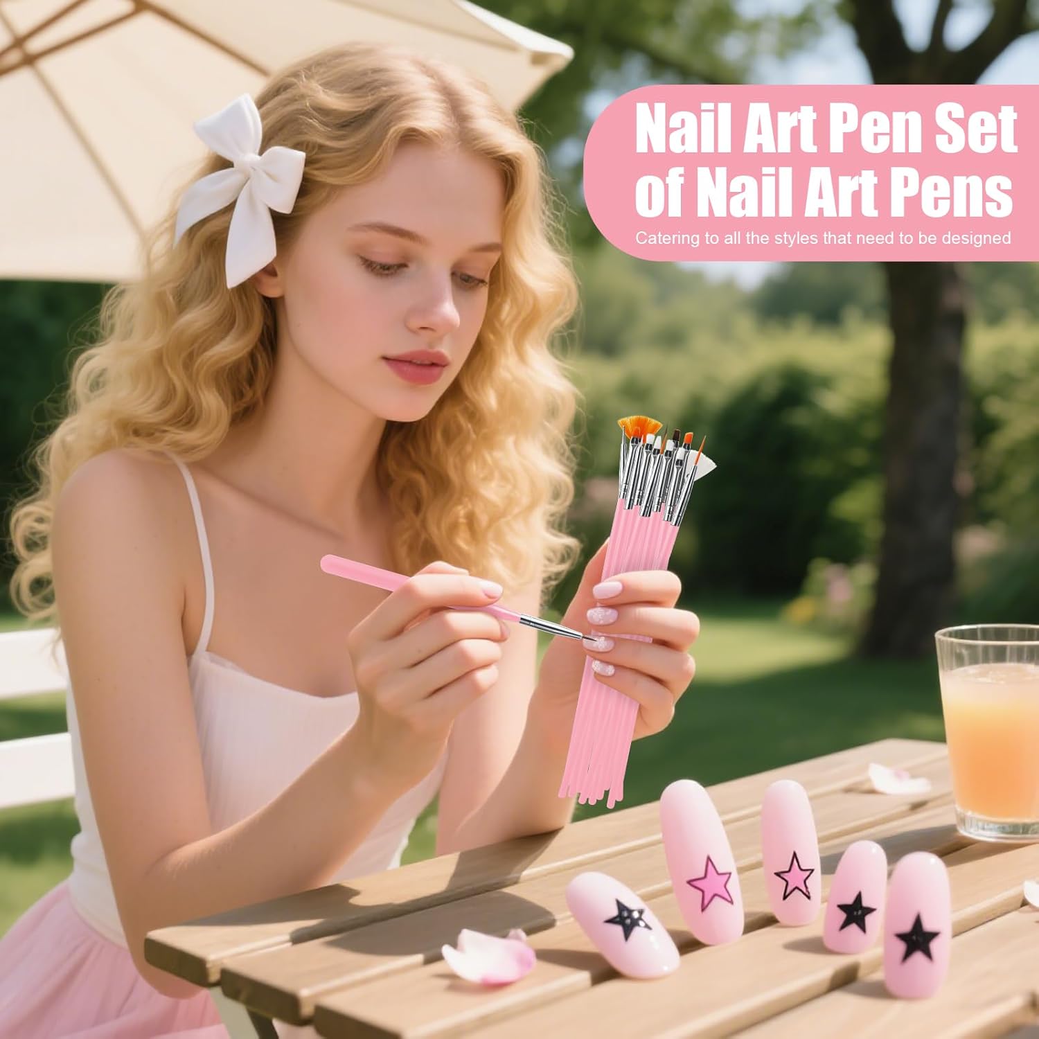 Artdone 15pcs Pink Nail Art Brushes, Nail Art Tool Set, Dotting Tools, Dust Brush,Striping Brushes for Long Lines, Drawing Pen For Gel Polish Design supply