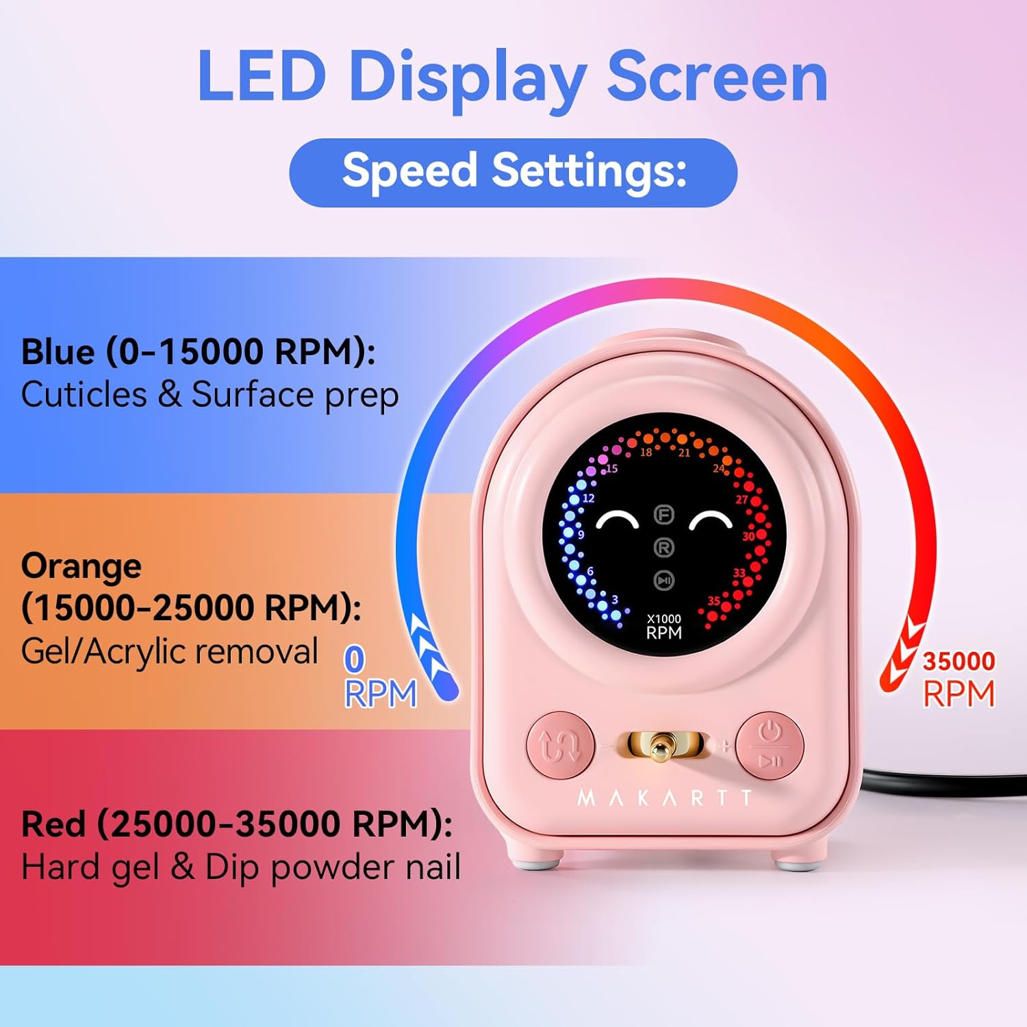 Makartt Electric Nail Drill - Professional 35000RPM E-File Machine Portable Nail Drill Kit with Drill Bits,Cute Compact Efile Salon Use Low Noise Manicure Pedicure for Acrylic Gel Nails Pink