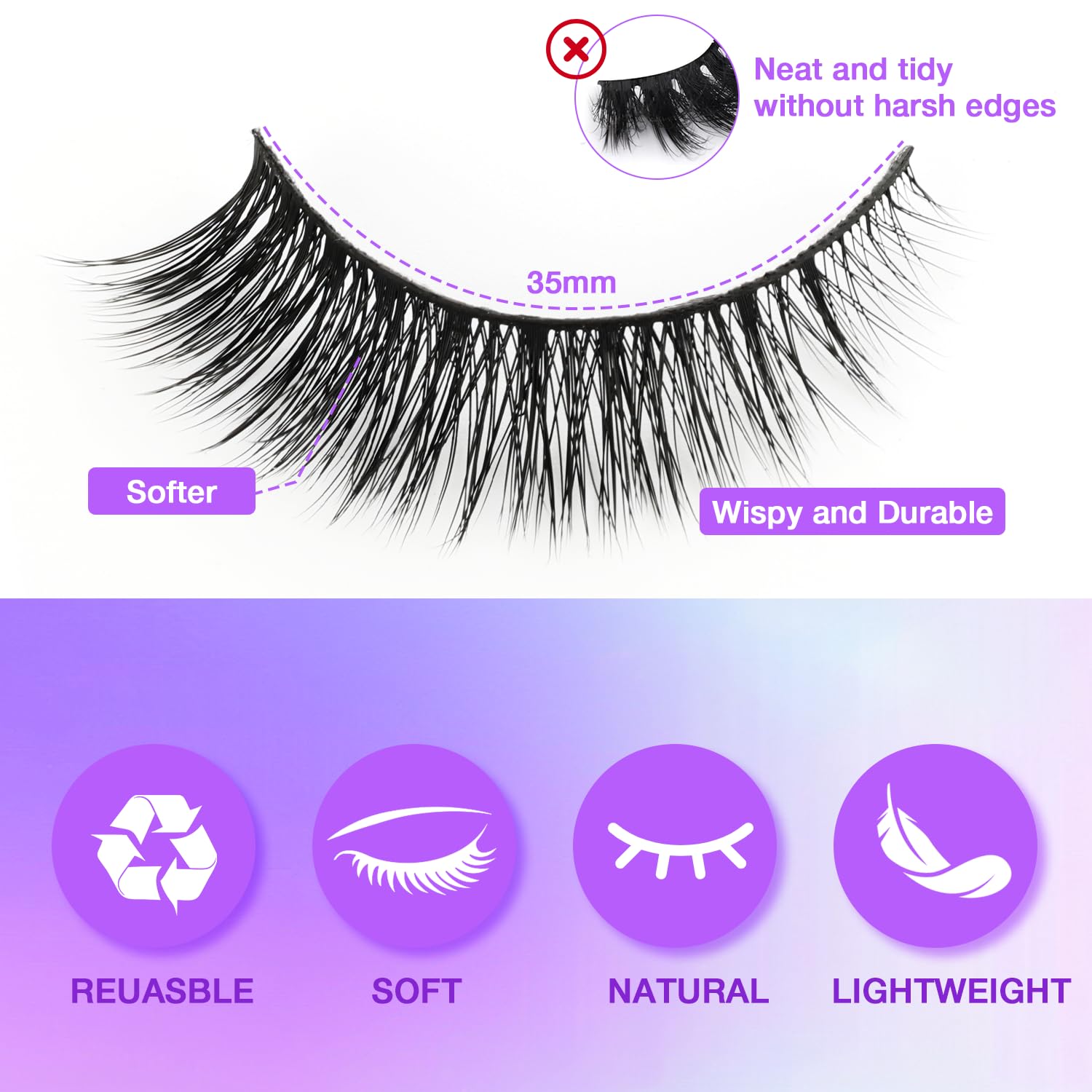 - 7 Pairs Natural-Looking Lashes Kit: Endless Beauty! Beginner-friendly false eyelashes with bond + seal + tweezer included! Achieve natural-looking wispy lashes in minutes – easy strip lashes with flexible thin band for seamless blending.