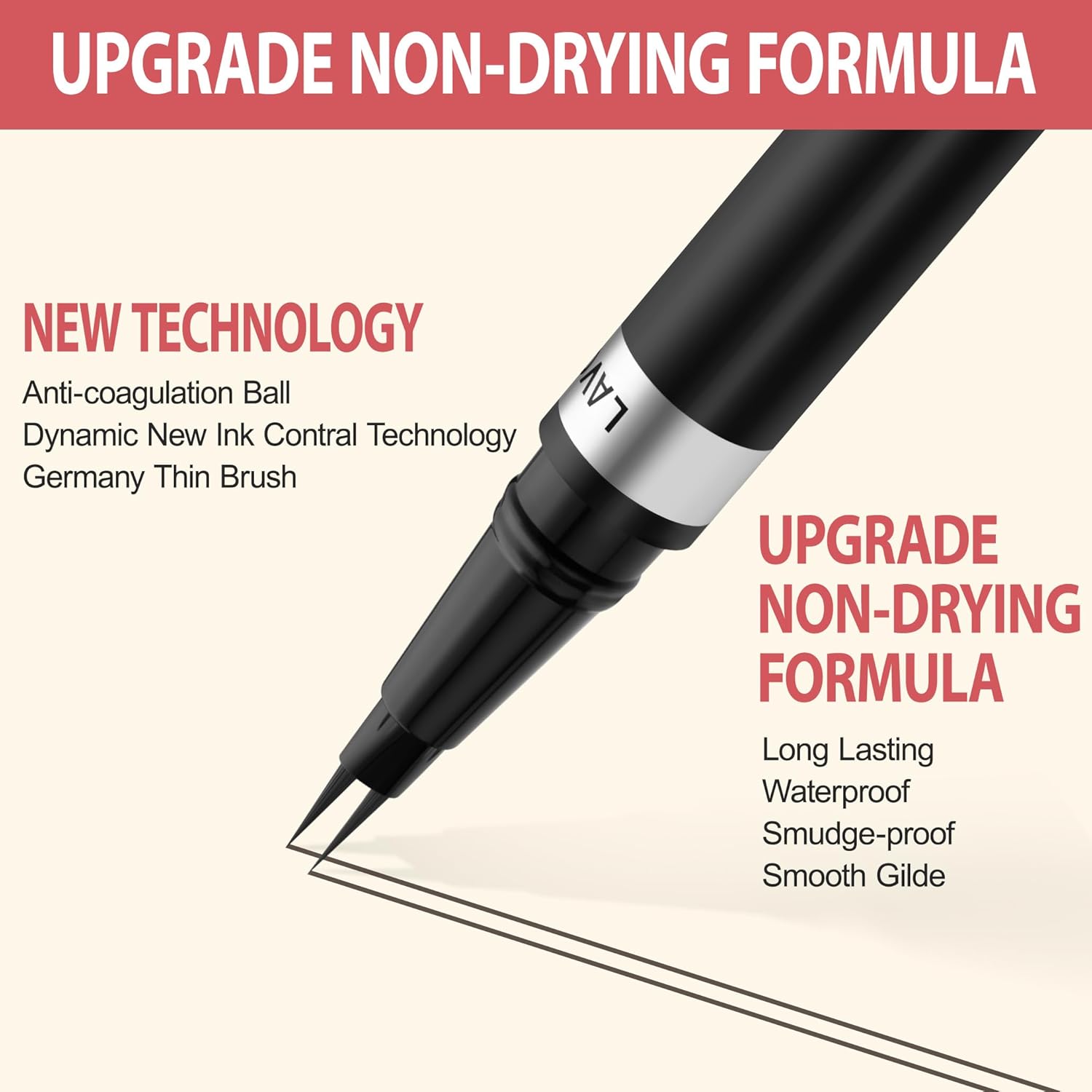 - Waterproof Liquid Eyeliner: LAVONE waterproof liquid eye liner ultra precise tip is flexible and easy to use. Every stroke is unbelievably fluid for a defined finish, the eyeliner pen is glides on smooth. The eyeliner pencil formula is long-lasting, smudge-proof and waterproof, keep in your brows up to 24hours.