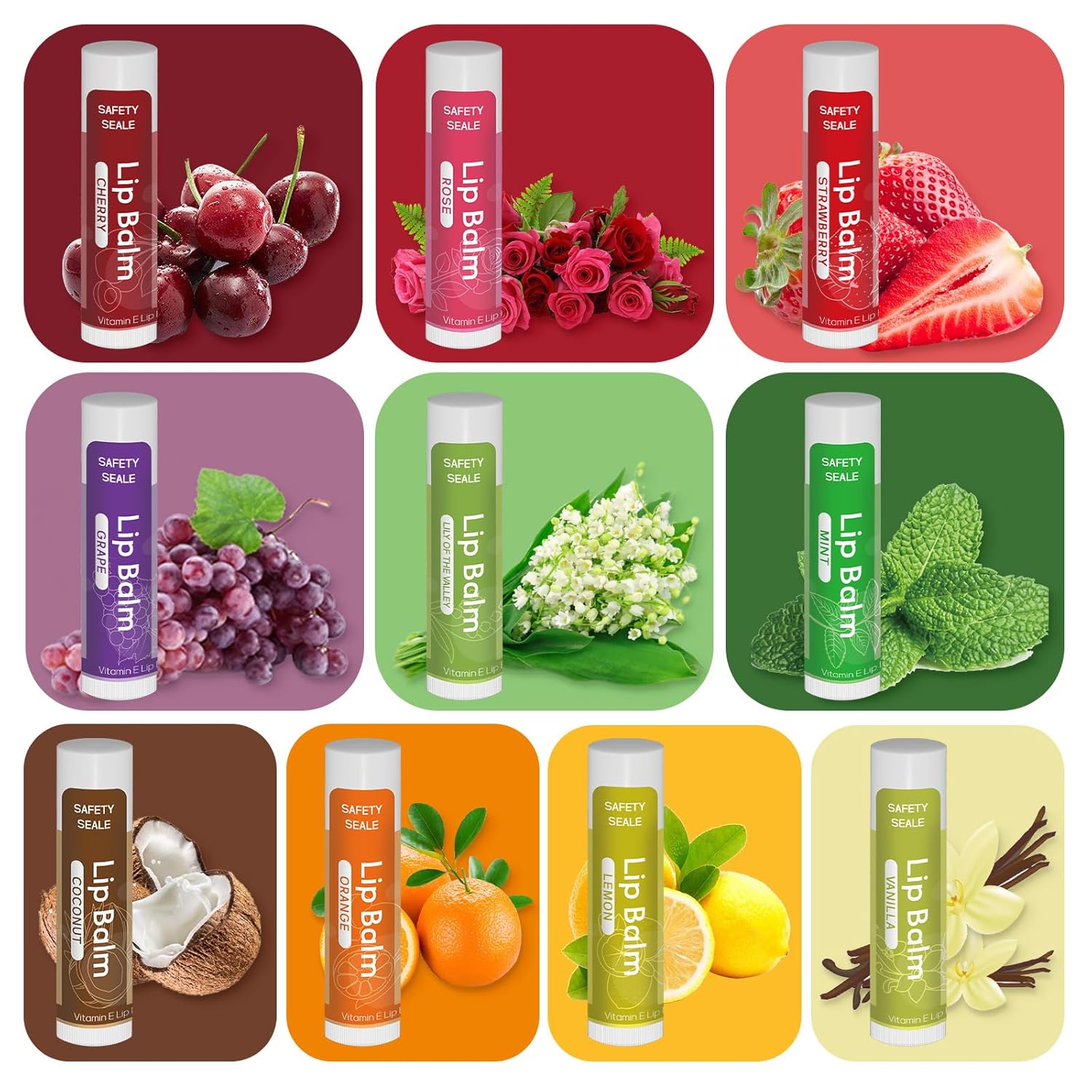 40 Pack Natural Lip Balm Bulk with Vitamin E and Coconut Oil - Moisturizing Dry Cracked Lips, Mini Chap Stick Gifts for Kids Women Men- 10 Flavors - Non-GMO