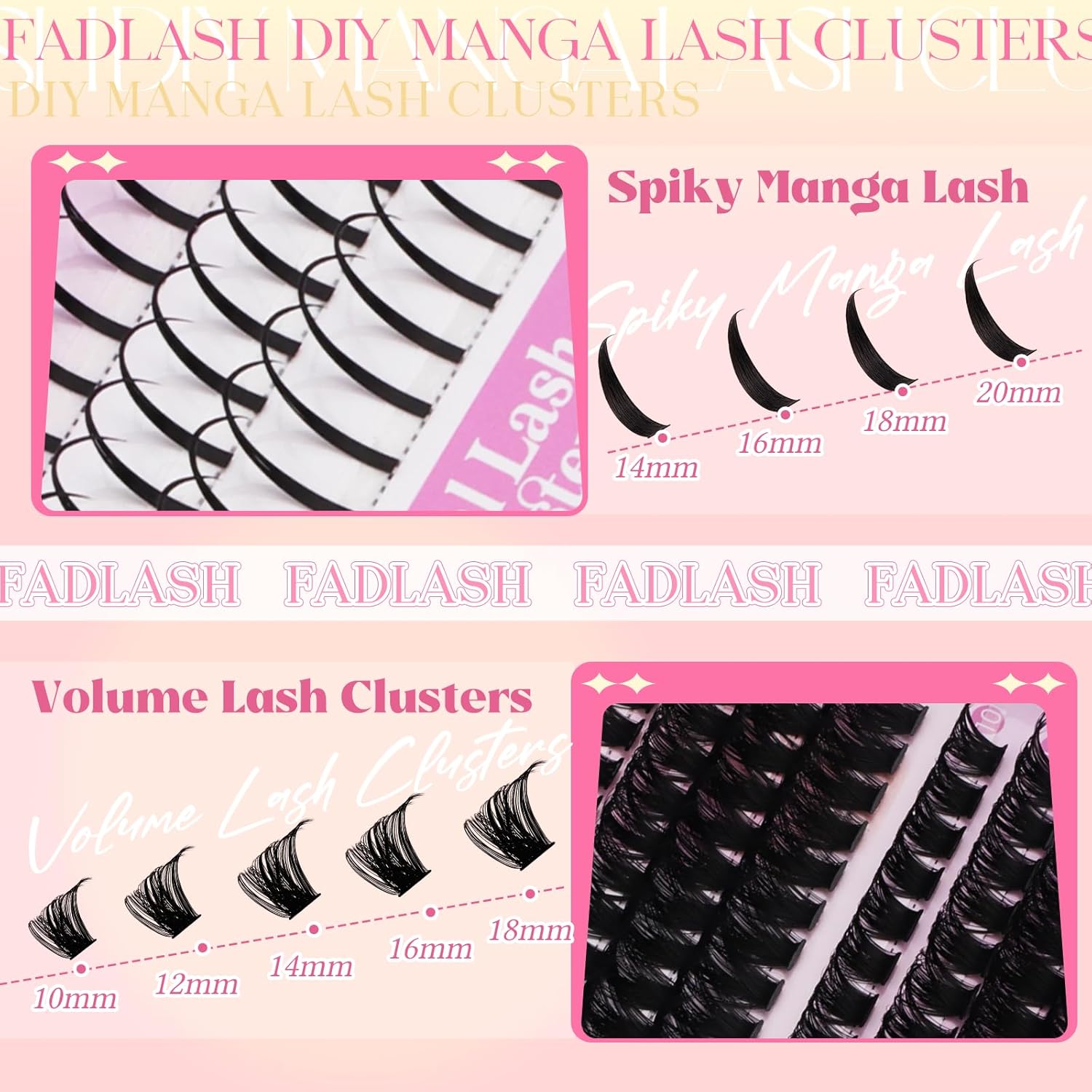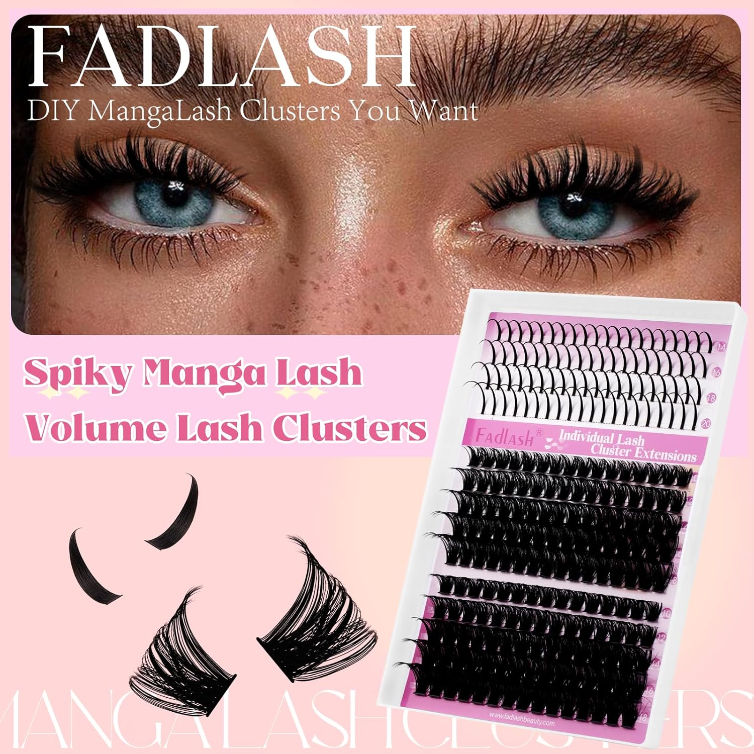 Lash Clusters 80D+100D Eyelash Clusters 10-18mm Spikes 14-20mm Thick Volum Manga Lashes with D Curl DIY Fairy Lash Clusters with Spikes by FADLASH