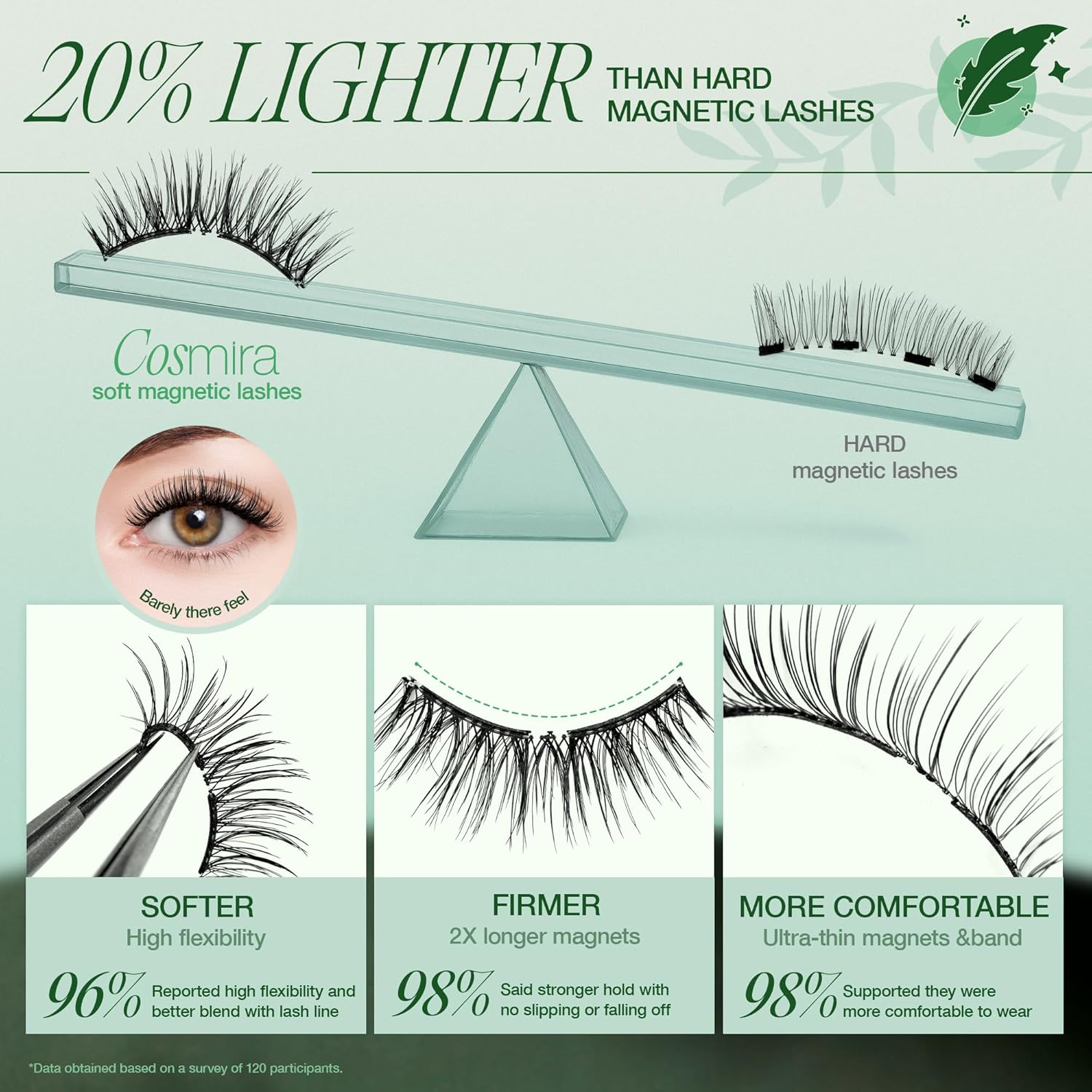 - 【Sustainable development】Cosmira magnetic lashes' reusable nature not only offers cost savings but also reflects our commitment to environmental sustainability. Our professional customer service team is always on standby. Once there is a product problem, please contact us immediately, we will be the first to solve your problem, for you to handle the non-return refunds, to ensure that your shopping is worry-free