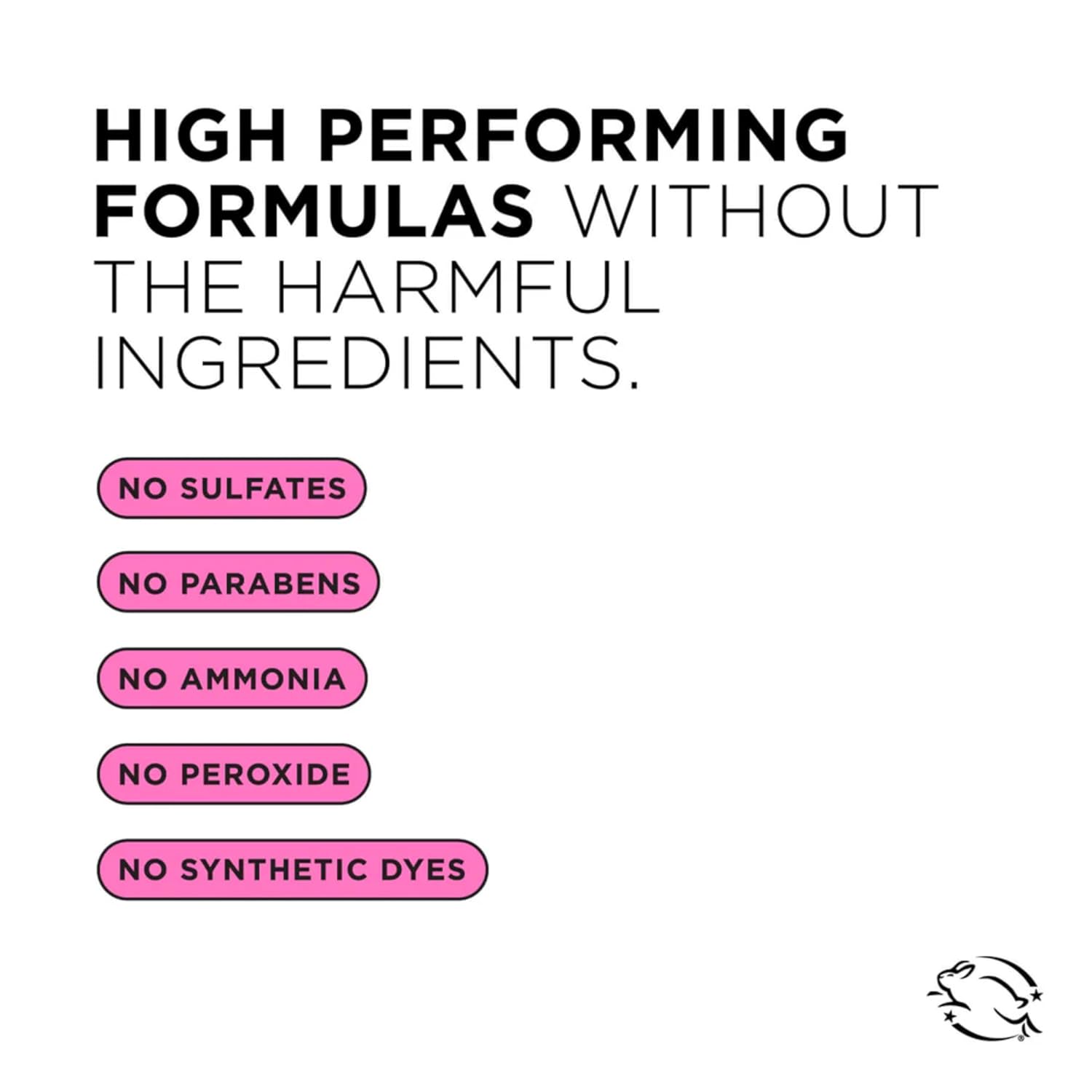 - Free of | Ammonia, peroxide, synthetic dyes, sulfates and parabens