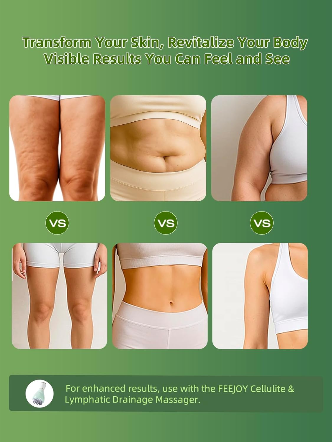 - 4-in-1 Botanical Formula – Smooth, Detox, Firm, Nourish: Powered by caffeine, centella asiatica, bitter orange oil, and a blend of nourishing carrier oils, this multi-action formula helps reduce cellulite, support lymphatic flow, tighten skin, and deeply hydrate.