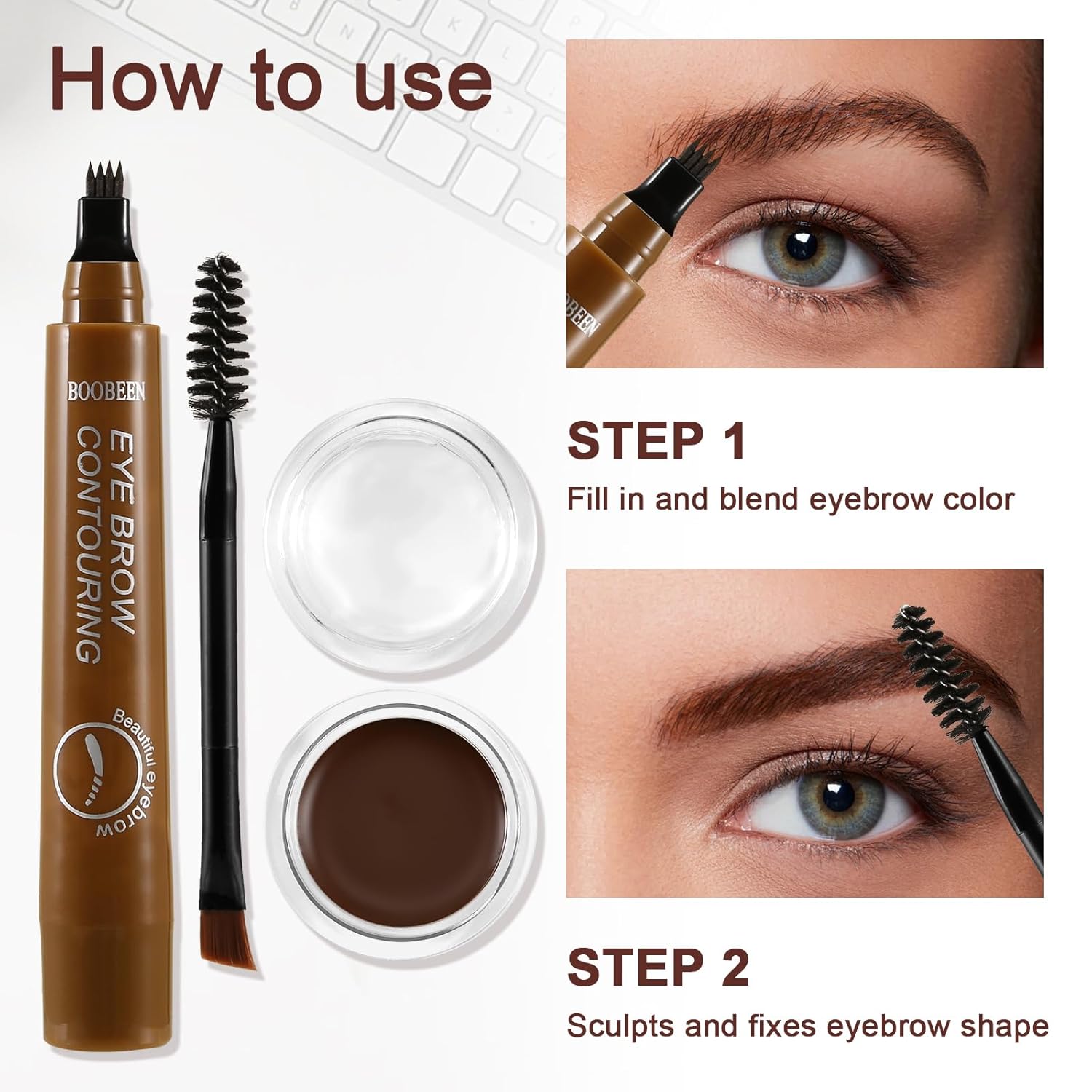 - 3-Step To Use: 1.Fill gaps with pomade 2.Carve sharp tails with angled brush 3.Brush & Lock with spiral spoolie. Pro Tip: Use micro eyebrow pencil first for natural definition!