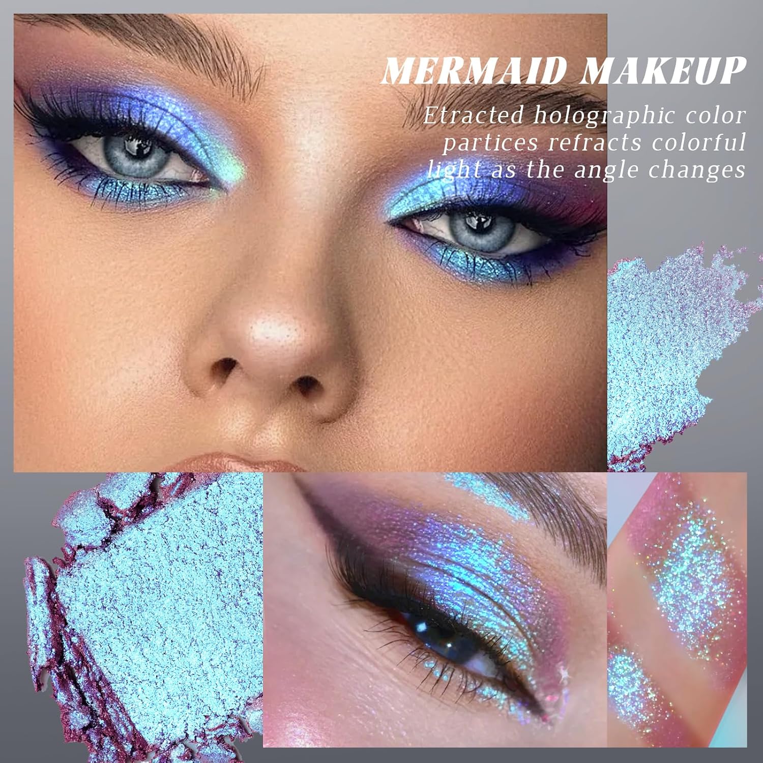 - Chameleon Mermaid Eyeshadow: Intense Color Shifting, Different light and angle will present different colors, holographic glitter eyeshadow will bring you special eye makeup