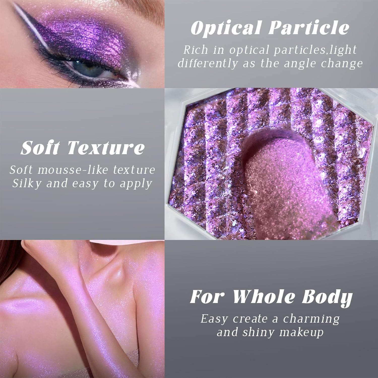 Chameleon Purple Glitter Eyeshadow, Cream to Powder Shimmer Multichrome Single Eyeshadow, Sparkling Holographic Color Shifting Eye Brightener Highlighter Makeup Palette 04