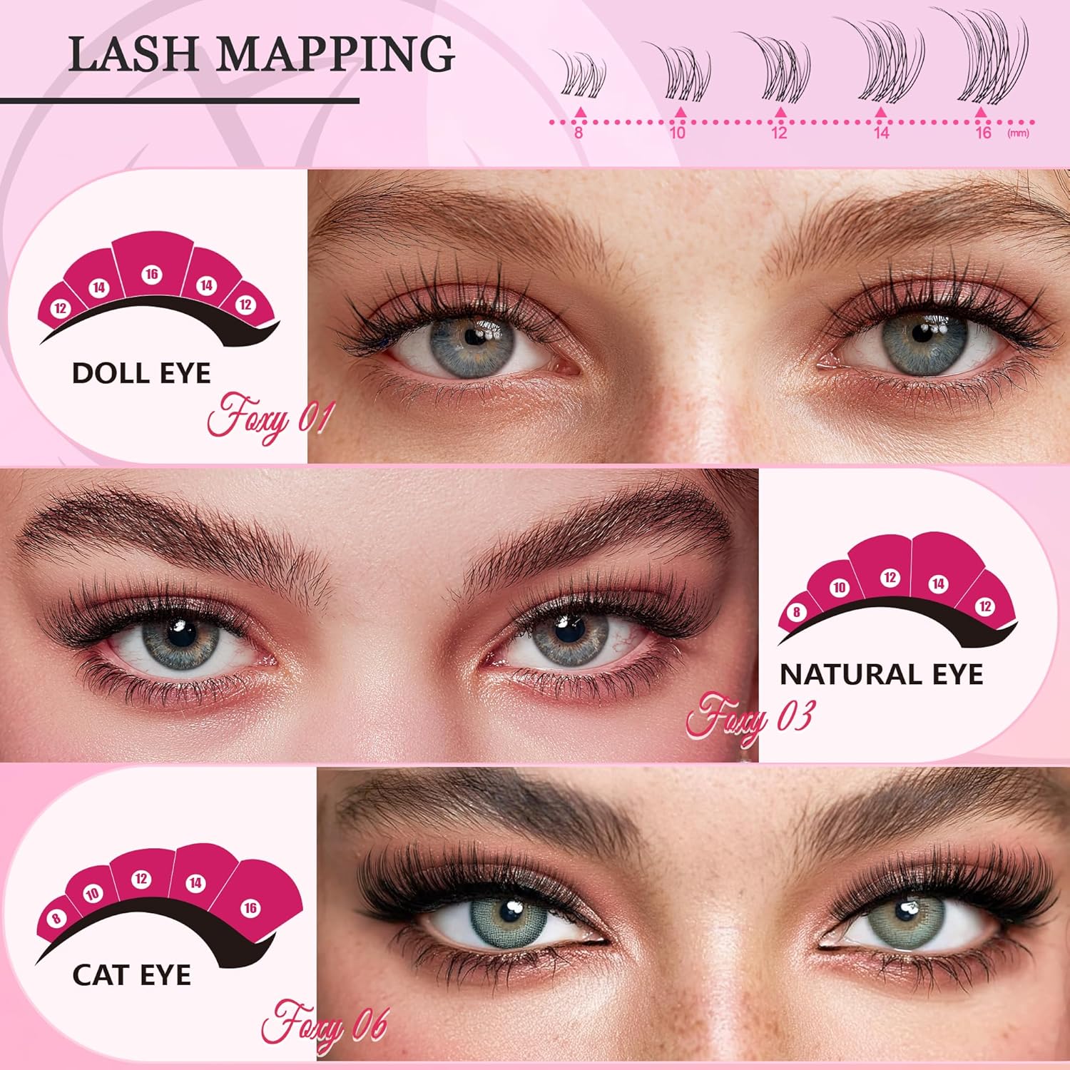 - 【Unbeatable Value Premium Lash Kit】Cost effective,360 Pcs wide-band lashes (8-16 mm) comes with months worth of lashes clusters and the quality is incredible.The kit comes with everything—tools included!Giving you about 3 months of beautiful lashes per lash book.Can't really beat the price,don’t need to go pay 100’s for lash extension.Nova lashes clusters kit set also includes eyelash glue, sealant, makeup remover, professional brush head and ergonomic tweezers and other accessories, professional Salon Results at Home,Same Look, 87% Less Cost.