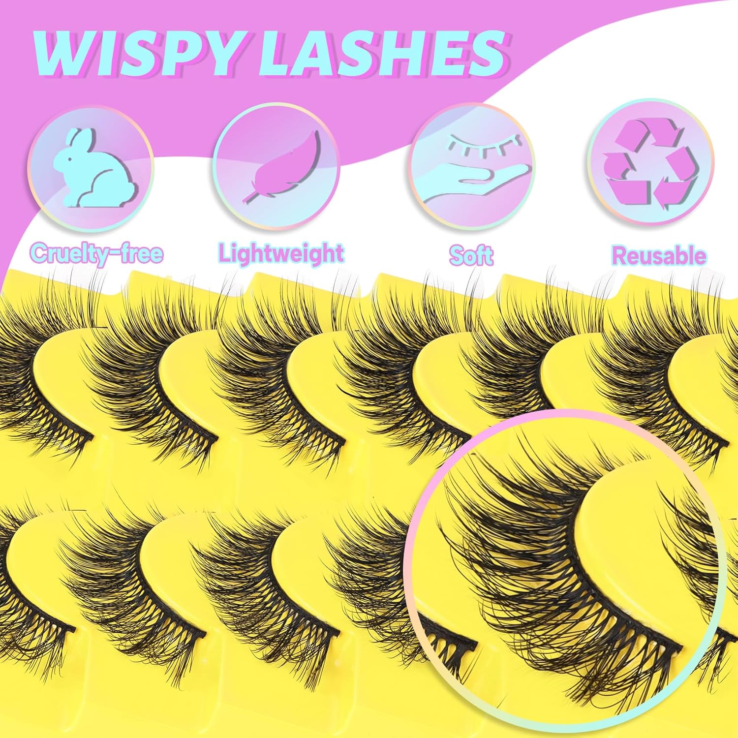 Losha Lashes Wispy Cat Eye Lashes 3D Natural False Eyelashes 9 Pairs Thin Faux Mink Lashes Pack Soft Lightweight Fake Eyelashes (Wispies)