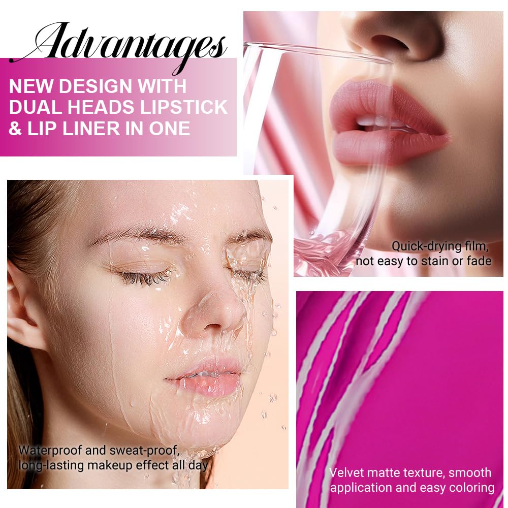 - 【Dual Ended 2-in-1 Lip Perfection 】The set includes precision lip liner and richly pigmented liquid lipstick that work together for a sharp, defined look. Line, fill, and slay with one power duo—ideal for bold beauty lovers.