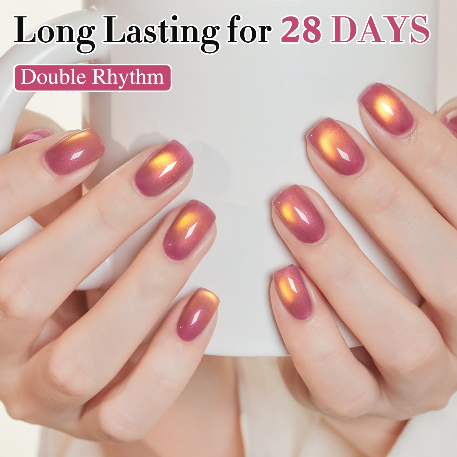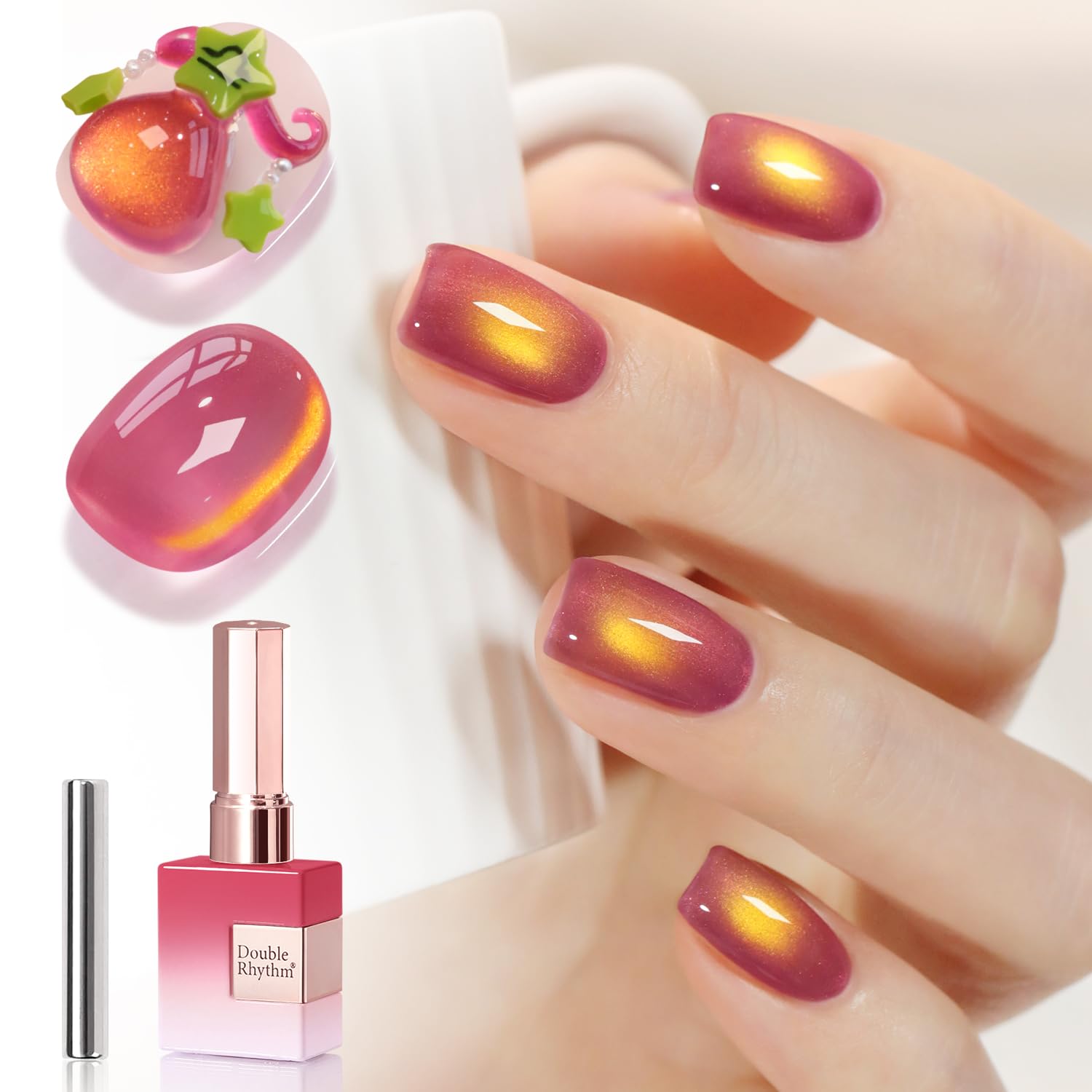 - Cat Eye Gel Nail Polish : Double Rhythm cat eye gel nail polish kit includes 1 color 15ml / 0.5 fl.oz gel nail polish.Come with same color gel with same color bottle and magnet .The cat eye gel can be combined with different bacse colors arbitrarily, you can get different colors nail art.You can use different base coat to creat different sytles.