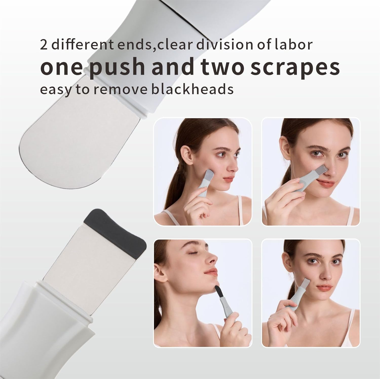 - Blackhead Remover Tools: The the black head remover scraper has two different ends,combining the functions of a skin scrubber, pore cleaner, and face scraper tool, it gently exfoliates dead skin, removes impurities, and improves overall skin texture.