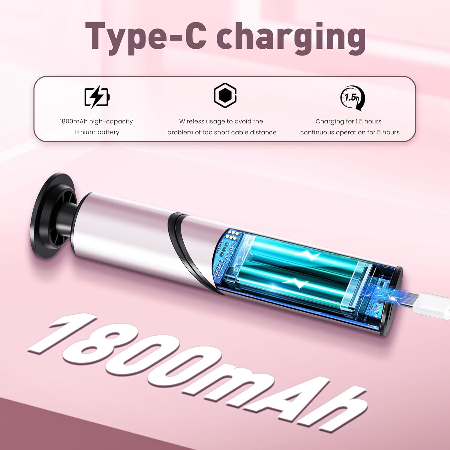 - [Rechargeable wireless electric callus remover for feet]:Unlike traditional wired electric foot callus removers, our foot callus remover is designed wirelessly, providing convenience for movement and eliminating the hassle of wires. The heel file of cracked high heels is powered by a rechargeable 1800mAh battery, supporting up to 5 hours of use. It comes with a Type-C USB charging port, making charging more convenient and faster.