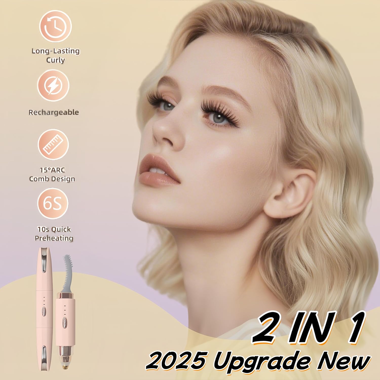 2025 Upgraded Heated Eyelash Curler - 2-in-1 USB Rechargeable Electric Eyelash Curler & Eyebrow Trimmer, Fast Heating in 6s, Anti-Burn Design, 24H Long-Lasting Effect, Gift for Women (Pink)