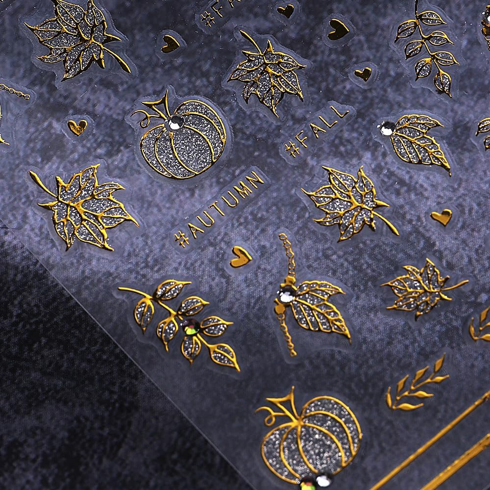 3 Sheets Fall Gold Nail Stickers for Nail Art Cute Gold Pumpkin Nail Decals Autumn Maple Leaf Nail Art Stickers 5D Self-Adhesive Glitter Thanksgiving Day Nail Decoration for Women Nails Design