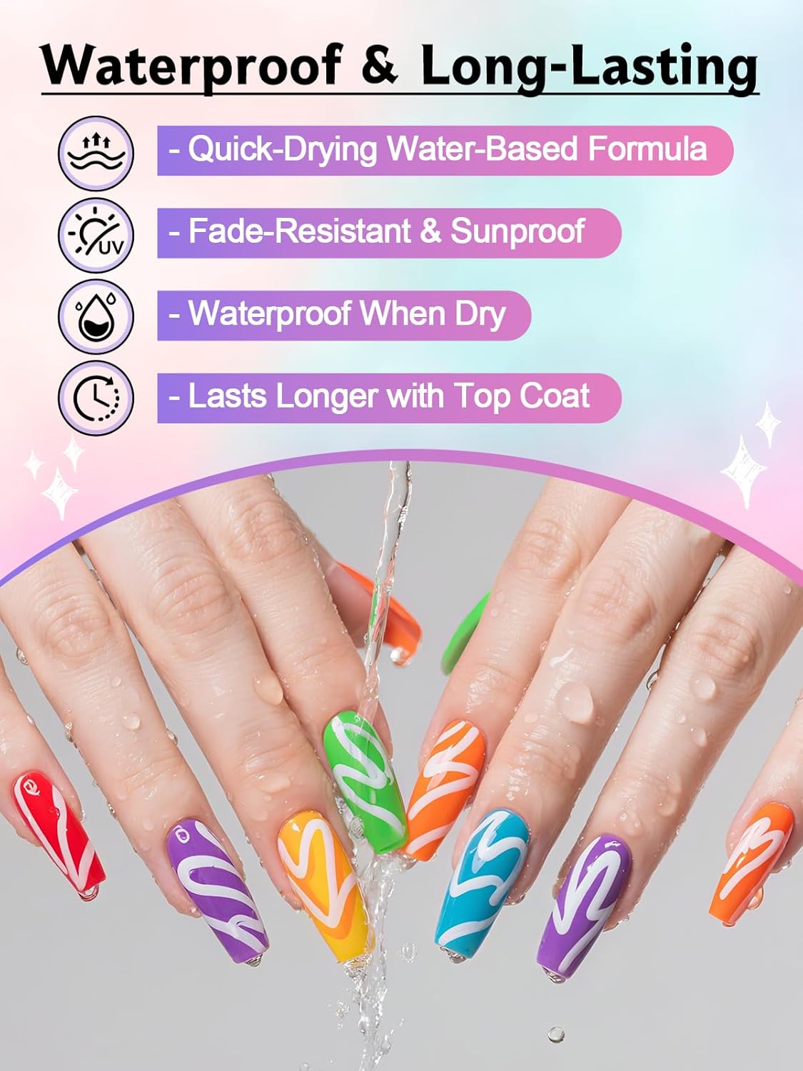 - Effortless Nail Art in Seconds ➤ No messy brushes or complicated tools—just instant creativity at your fingertips! Our nail art pens are designed for easy, no-fuss application: simply twist off the cap, gently press to release smooth-flowing ink, and glide into flawless designs. Whether you're a first-timer or a nail pro, enjoy streak-free precision with zero cleanup. The simplest way to upgrade plain nails into head-turning masterpieces!