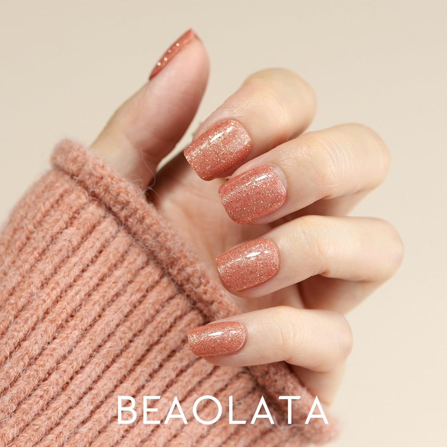 Nail Polish Strips, 32PCS Salon Quality Wraps, Long Lasting Gel Nail Stickers for Women Easy Apply& Remove (Golden Dust Gold)